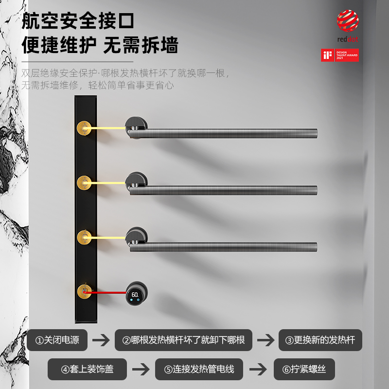 [国家补贴]FELUOKA斐洛恩H36电热毛巾架暗装智能加热烘干旋转收纳