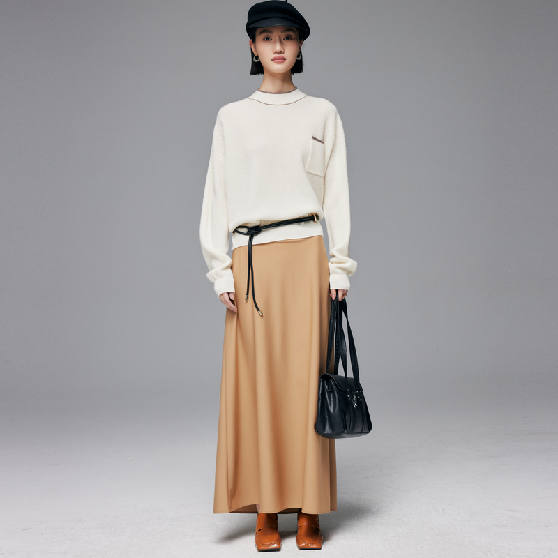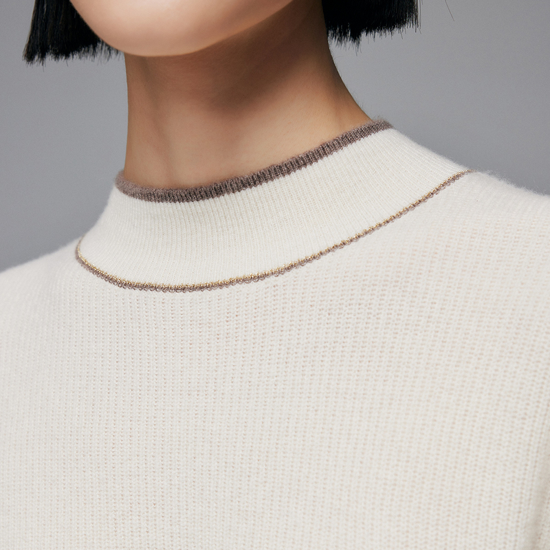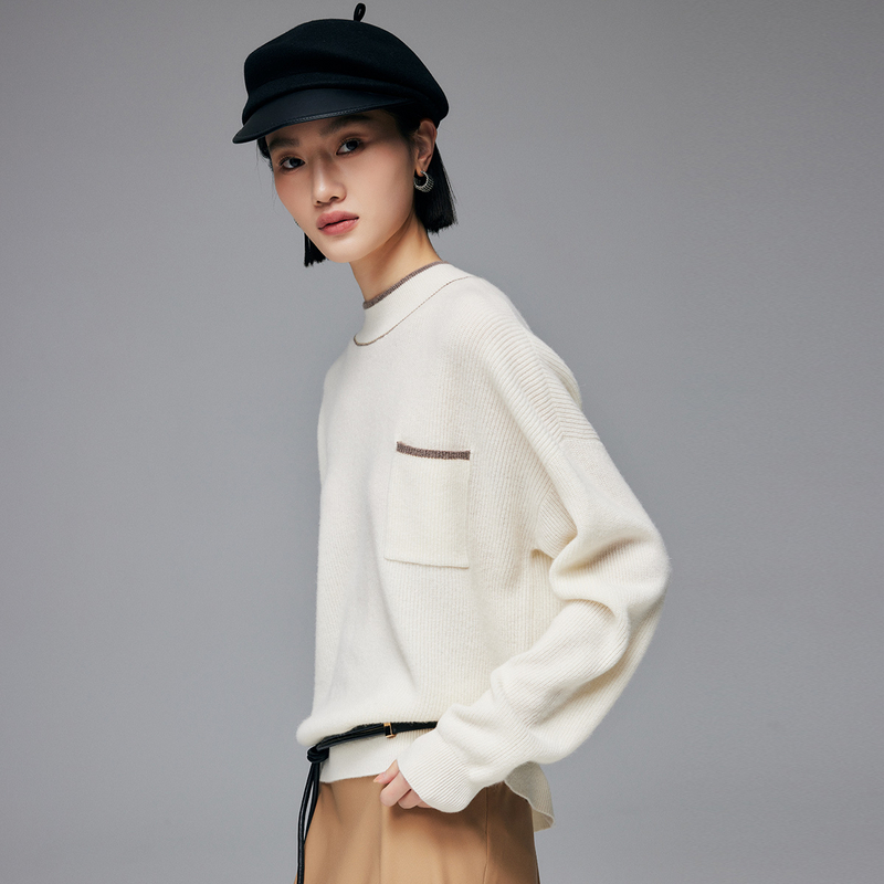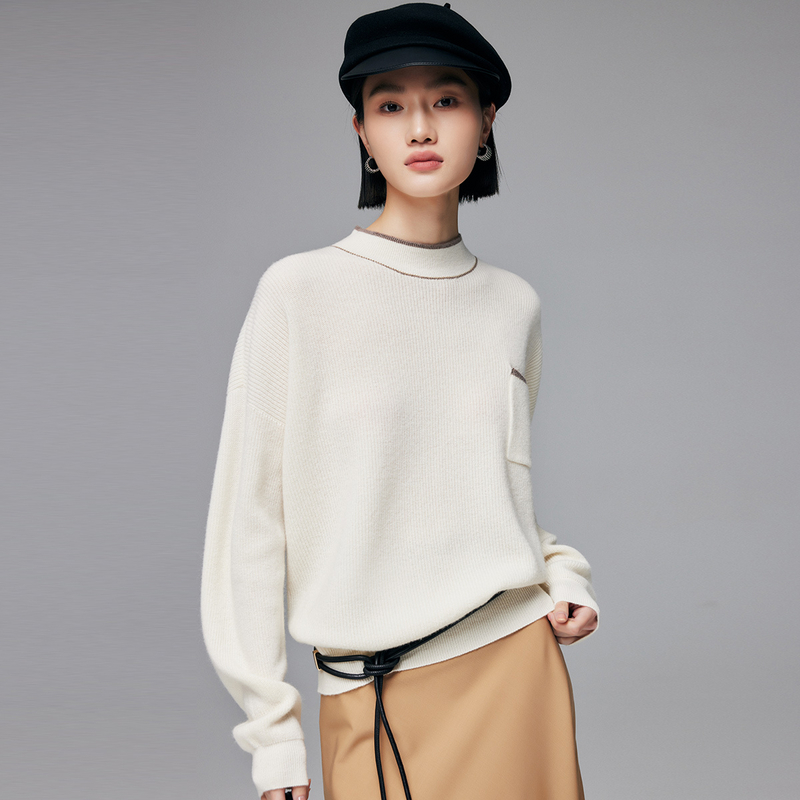 帕罗2025秋冬新款条纹口袋100%纯山羊绒衫女士针织半高领休闲毛衣