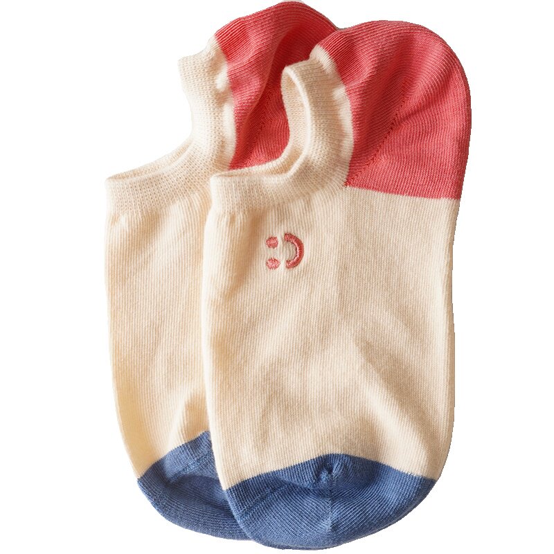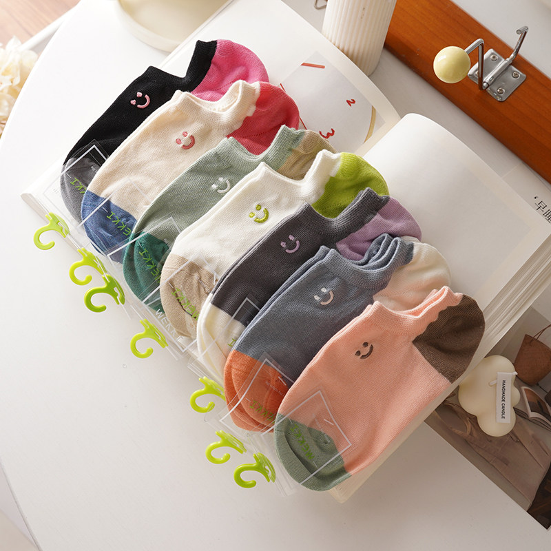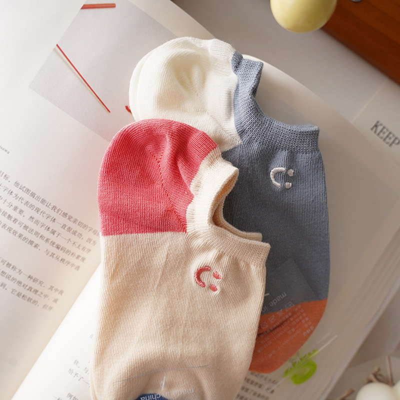 ins韩系笑脸小撞色船袜~无骨浅口隐形袜子女纯棉夏季薄款硅胶防滑