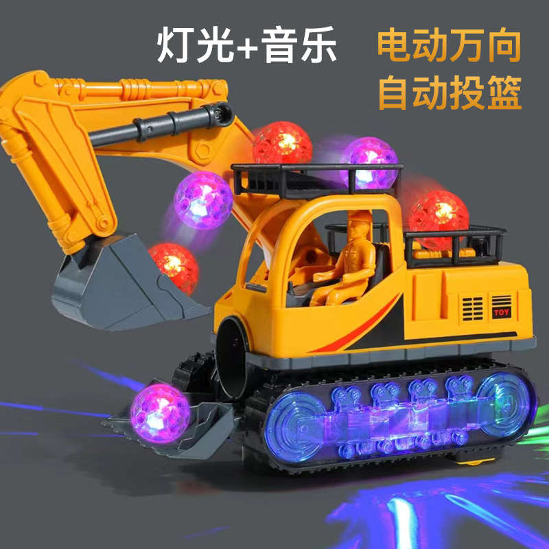 儿童手提灯笼自动投篮挖掘机电动音乐发光男孩玩具车灯笼2024新款