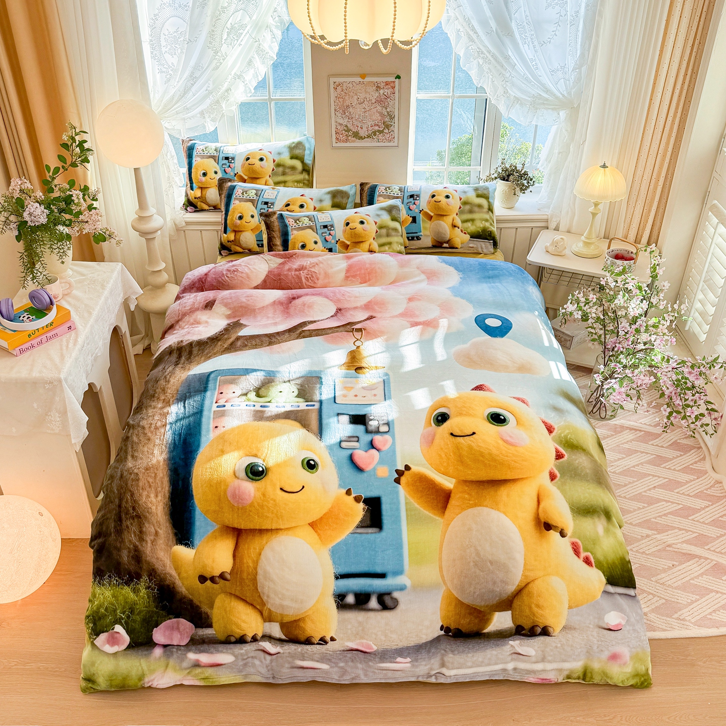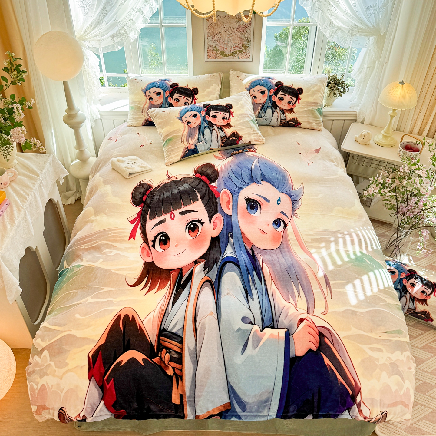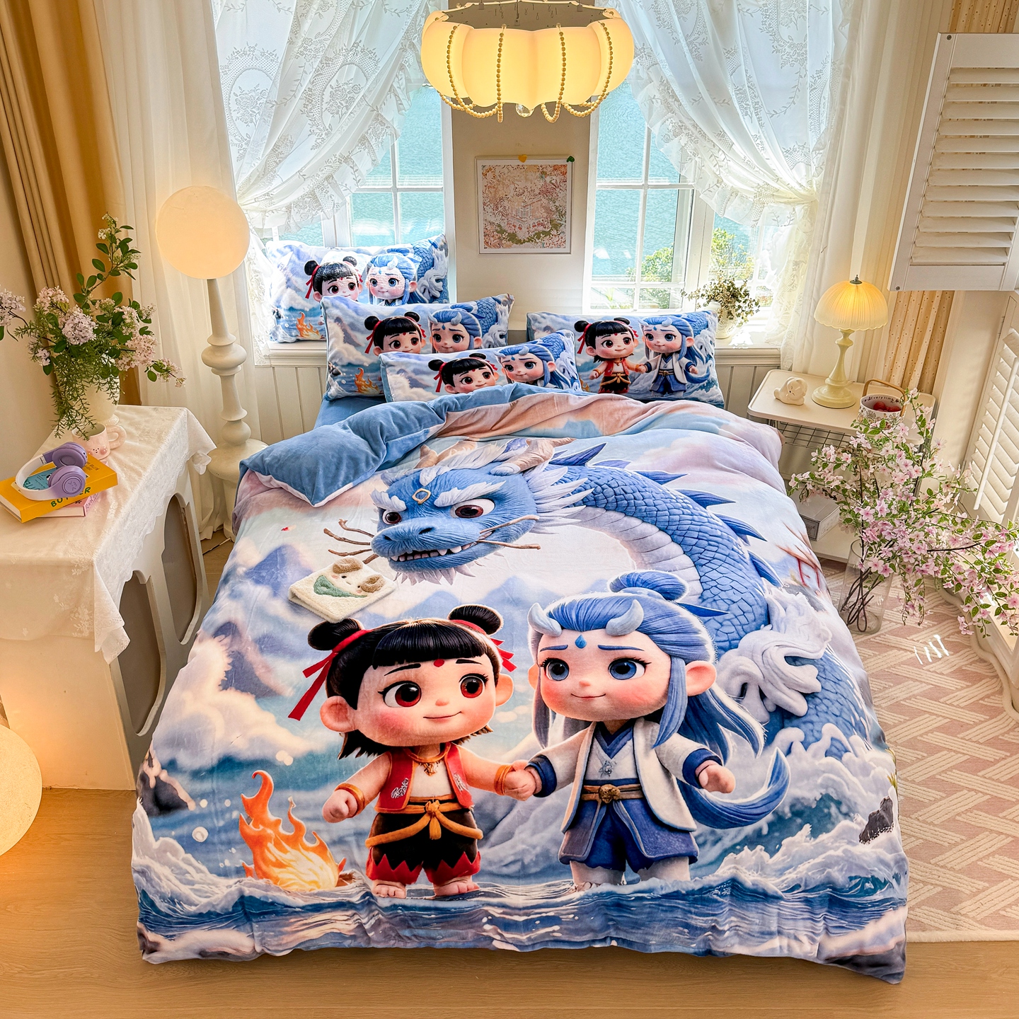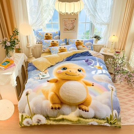 奶龙儿童四件套牛奶绒男孩加绒被套双面绒秋冬保暖哪吒男孩房床品