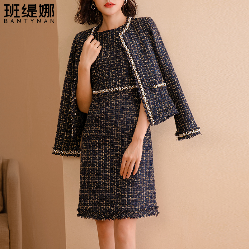 小香风套装裙女2024年秋冬新款气质名媛时尚洋气毛呢连衣裙两件套