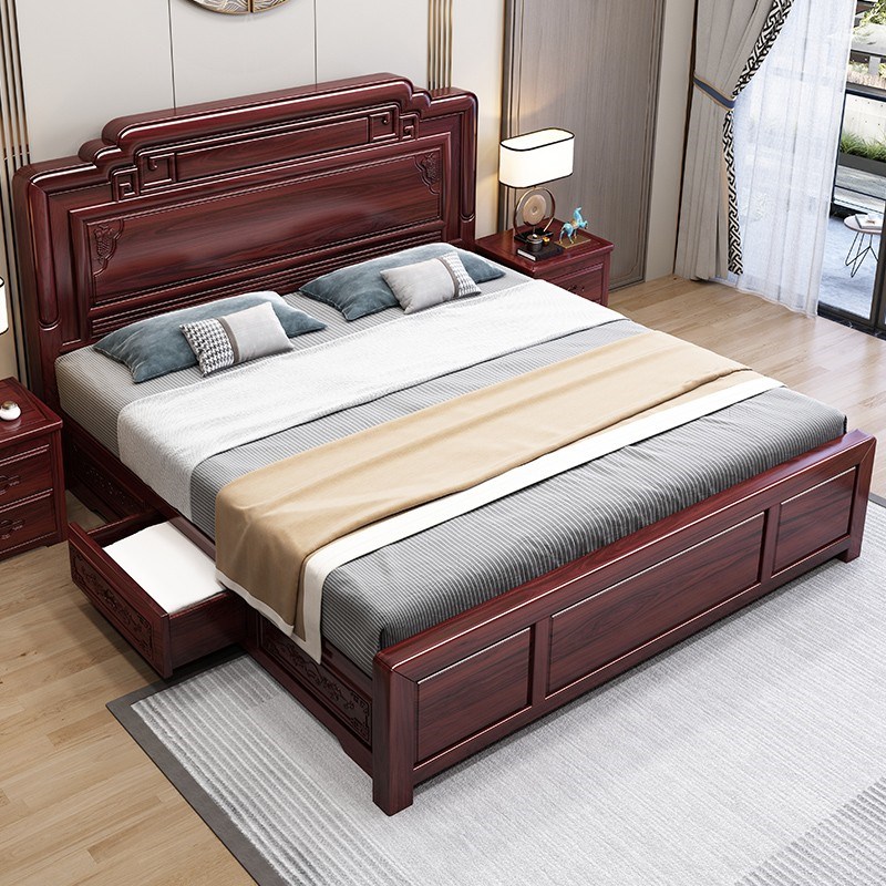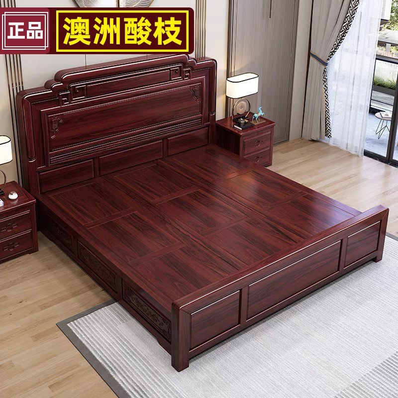 新中式澳洲酸枝实木床1.8米双人大储物高箱主卧1.5米红木雕花家具