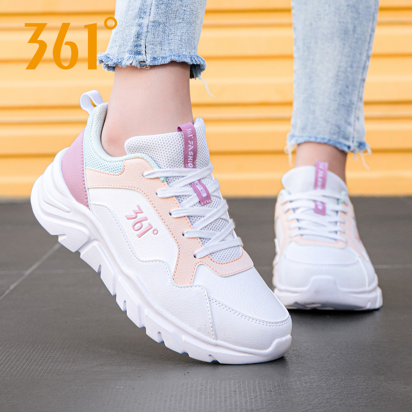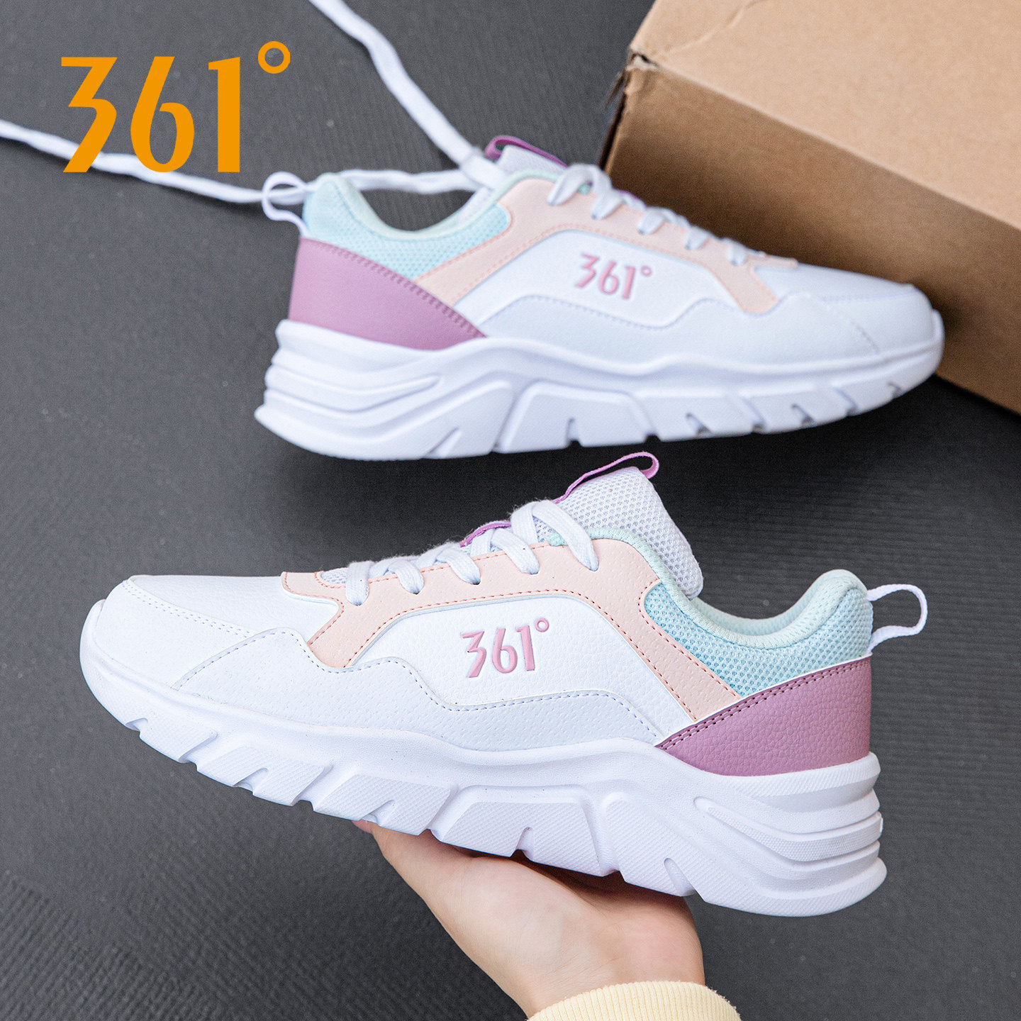 361女鞋跑步鞋皮面防水休闲鞋361度运动鞋女软底跑鞋秋冬鞋子正品