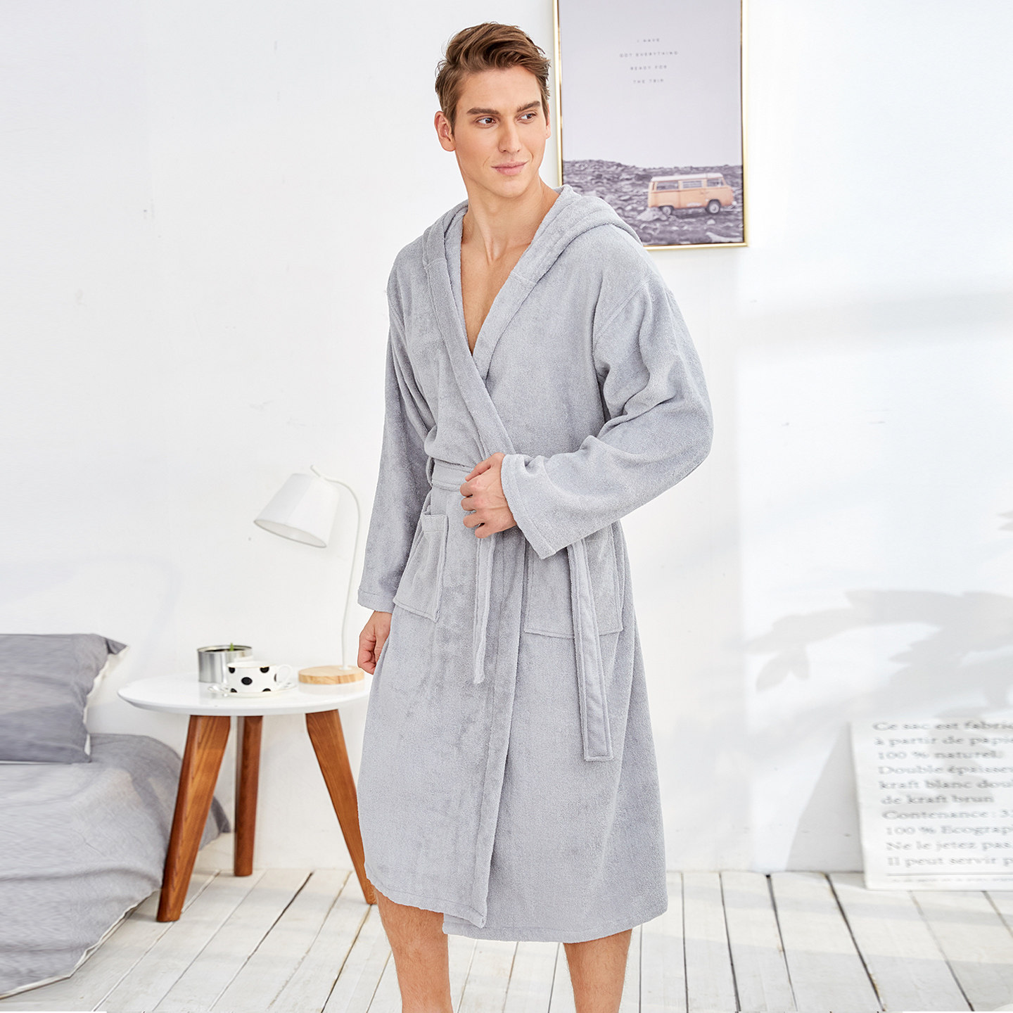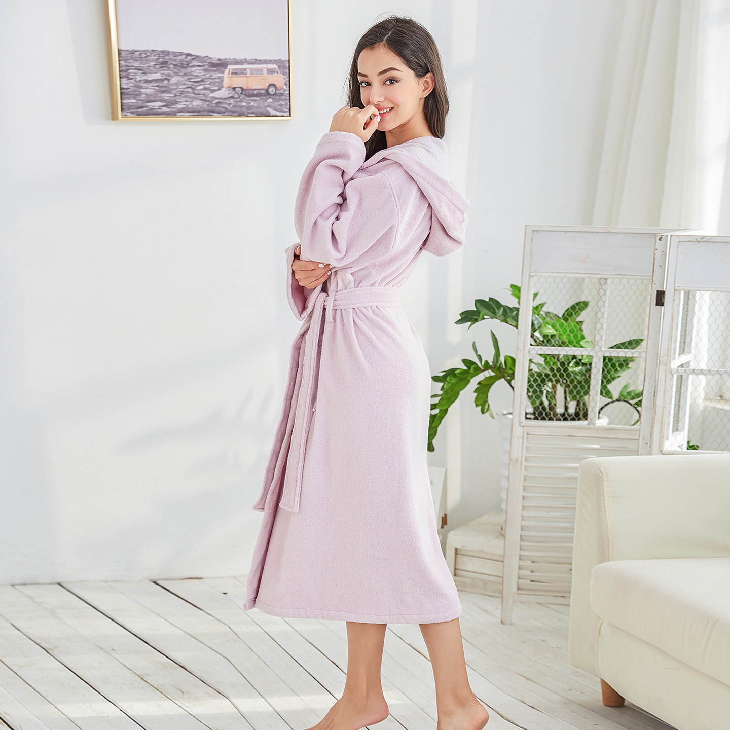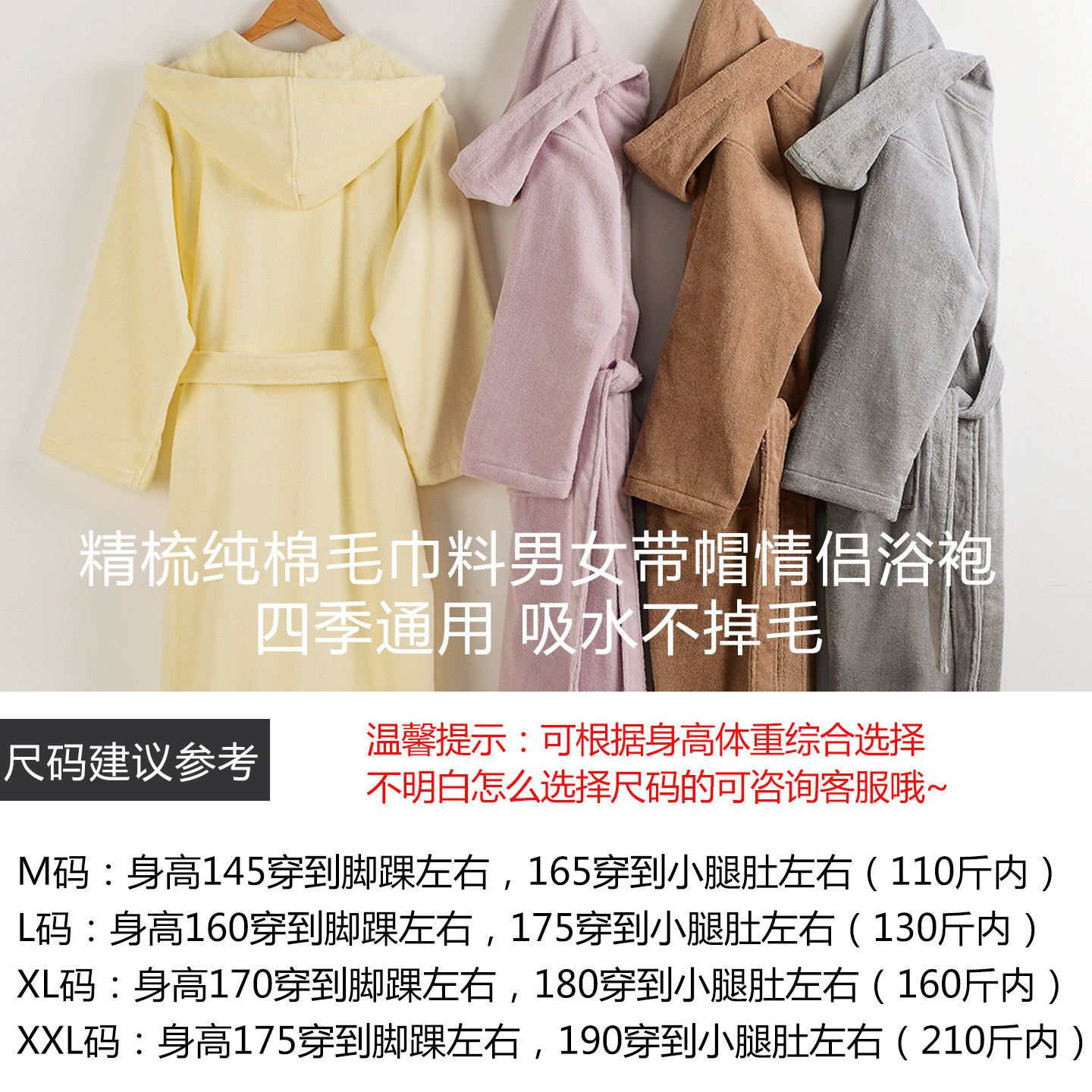 纯棉浴袍毛巾料成人秋冬加厚全棉