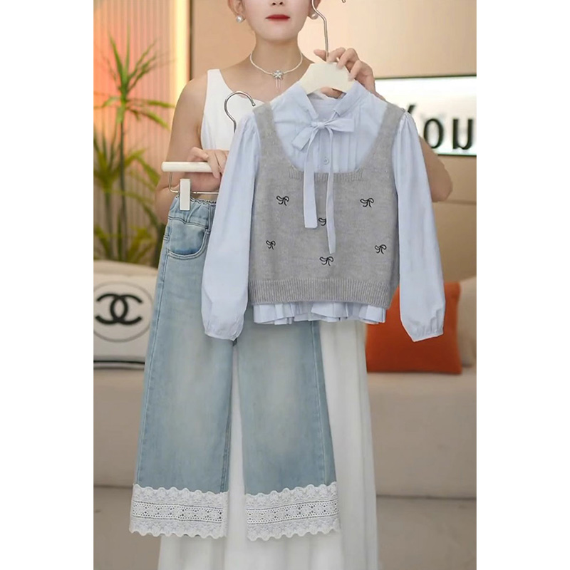 女童春秋款套装2025新款儿童时髦洋气女中大童春装衬衫马甲三件套