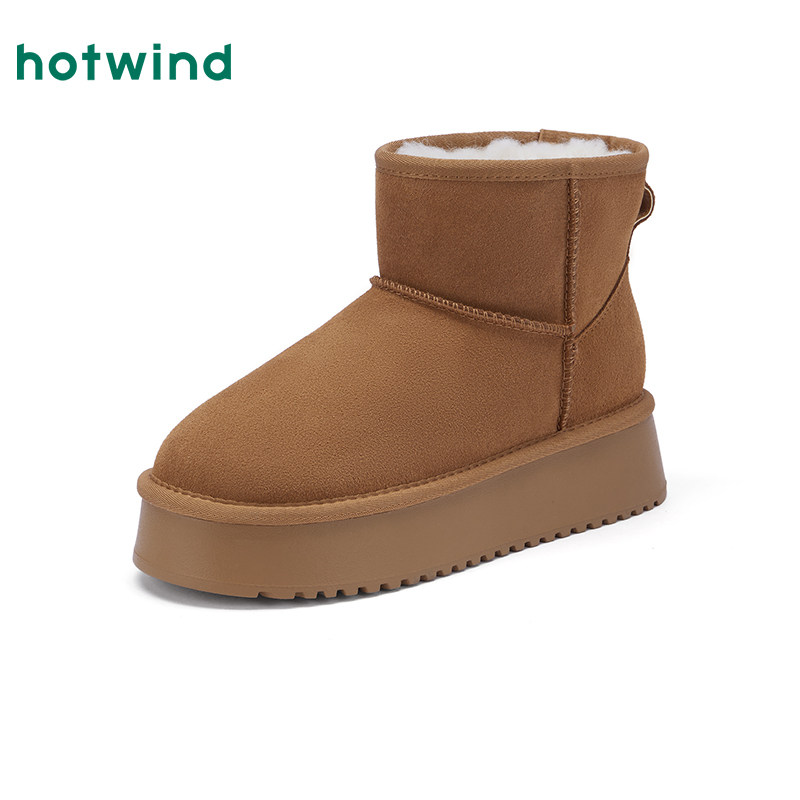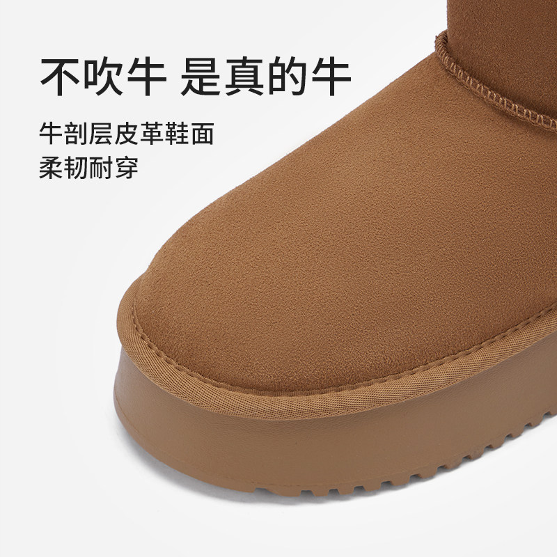 热风厚底雪地靴女2025年冬季新款加绒保暖短筒靴小个子增高女靴子