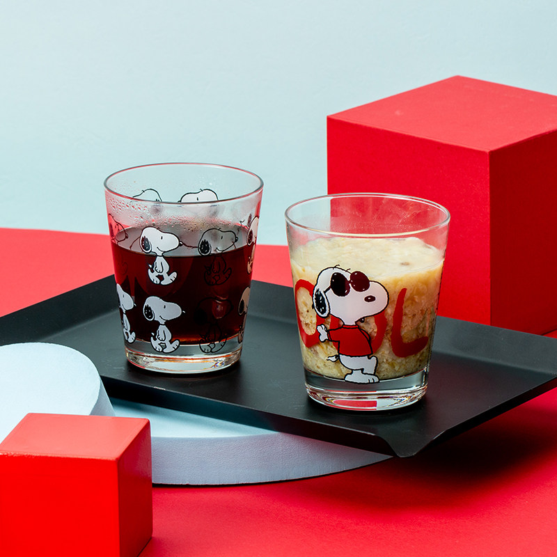 【官方正品】史努比SNOOPY玻璃杯日本进口卡通美式牛奶杯礼盒装