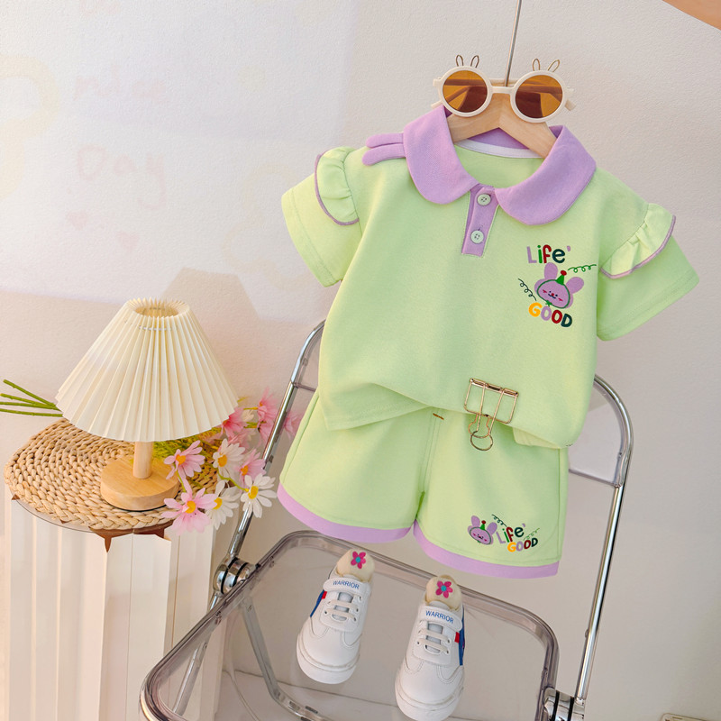女童套装夏季2025新款儿童polo衫短袖短裤两件套夏季休闲运动装潮