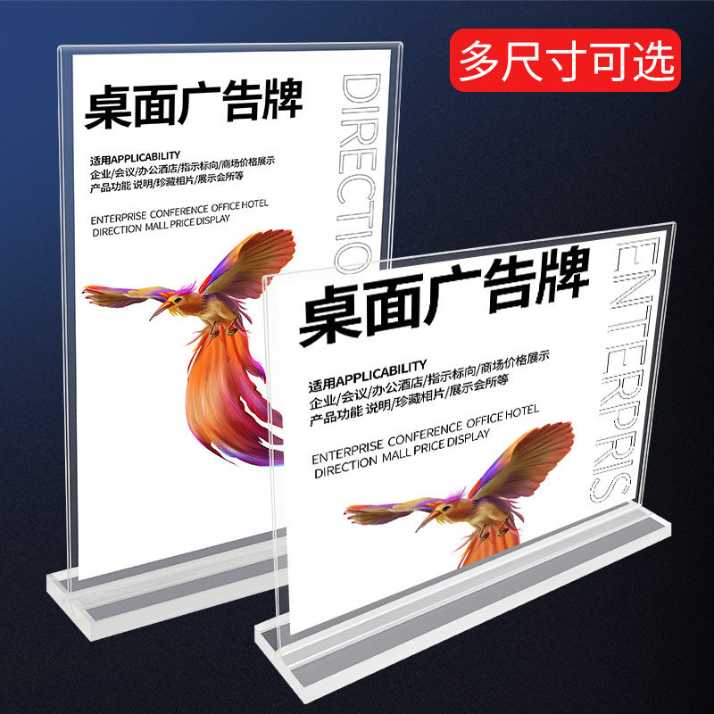 亚克力台卡桌牌双面透明立牌a4抽拉强磁台签展示牌A5桌卡个性创意A6餐牌酒水晶定制菜单广告价目表T型展示架