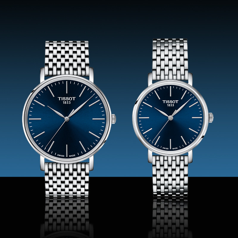 【新年礼物】Tissot天梭魅时系列蓝盘石英钢带手表情侣对表