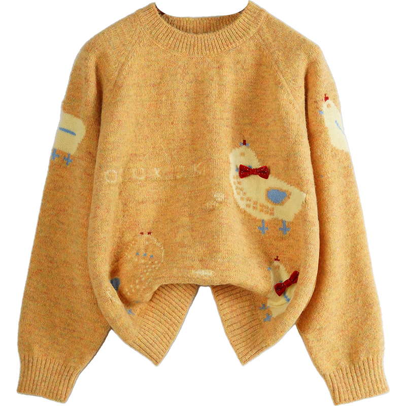 儿童提花毛衣女童韩版新款秋冬季慵懒风宽松加厚初高中学生针织衫