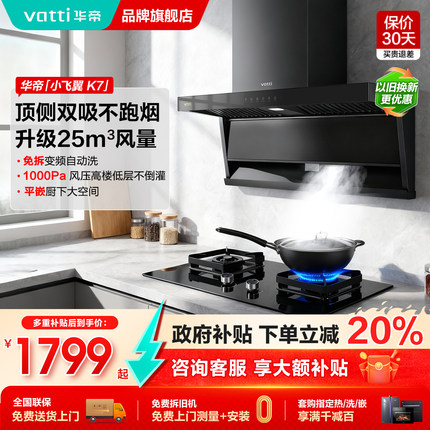华帝小飞翼K7顶侧双吸油烟机燃气灶一套7字型官方旗舰店正品