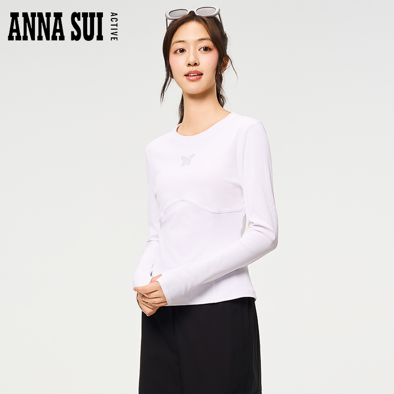 ANNA SUI安娜苏运动 竖条纹修身高弹美型抗菌防晒运动长袖T恤凉感