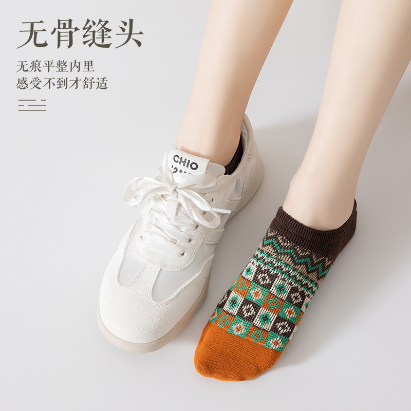 无骨袜子女船袜夏季纯棉吸汗防臭浅口短袜复古防滑不掉跟隐形袜女