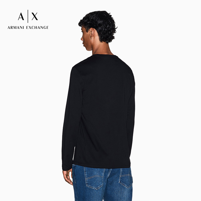 ARMANI EXCHANGE/阿玛尼男士纯棉修身圆领正肩长袖薄T恤上衣内搭