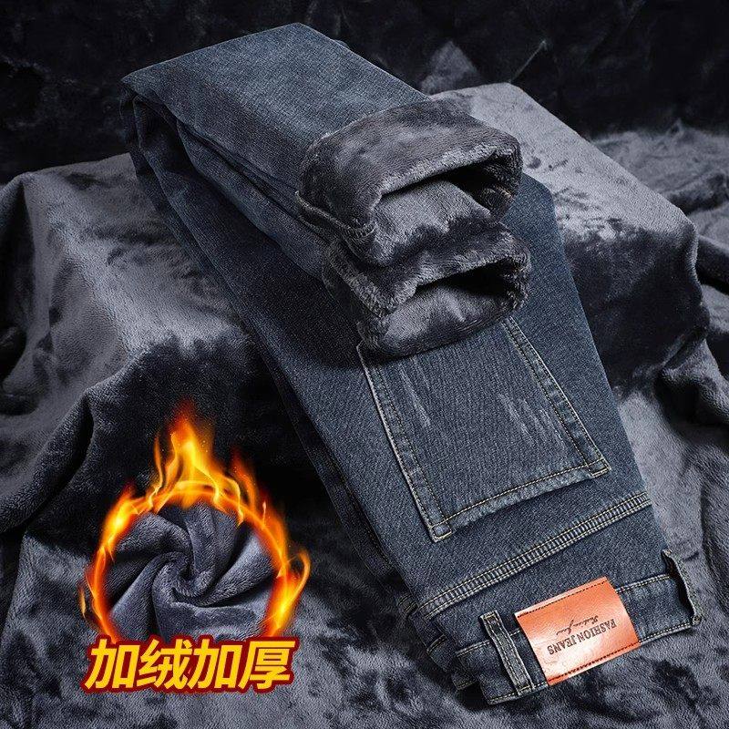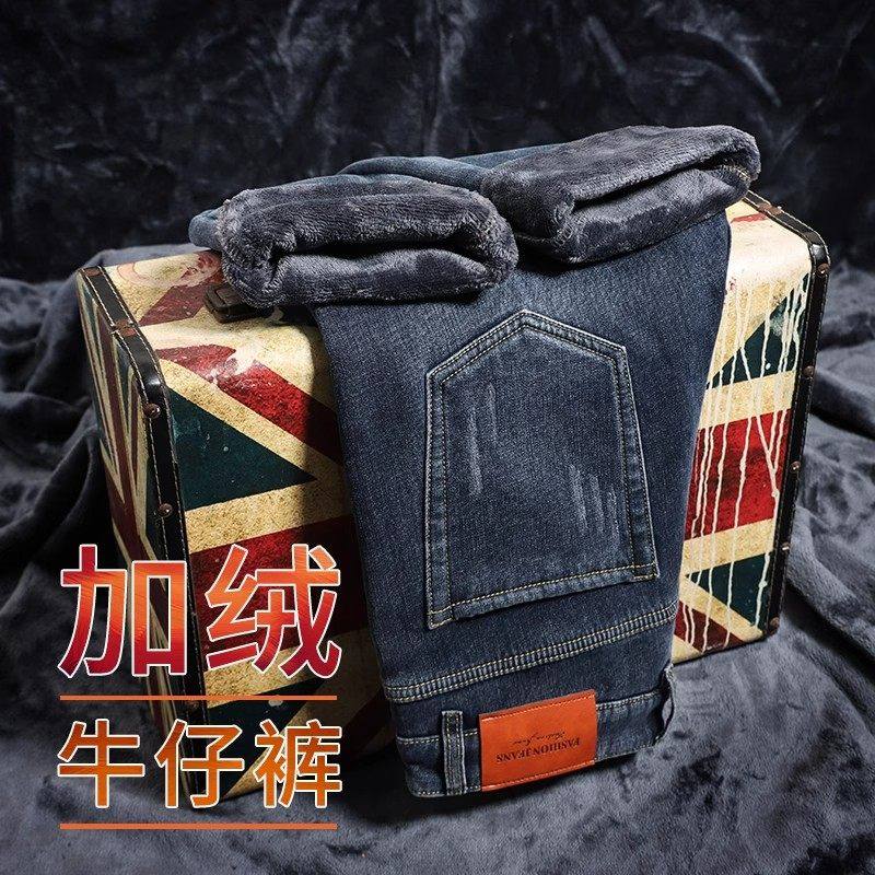 Yishion以纯官方时尚正品加绒牛仔裤男秋冬季男士加厚裤子男修身