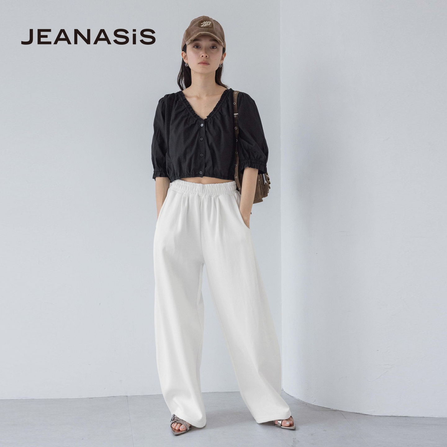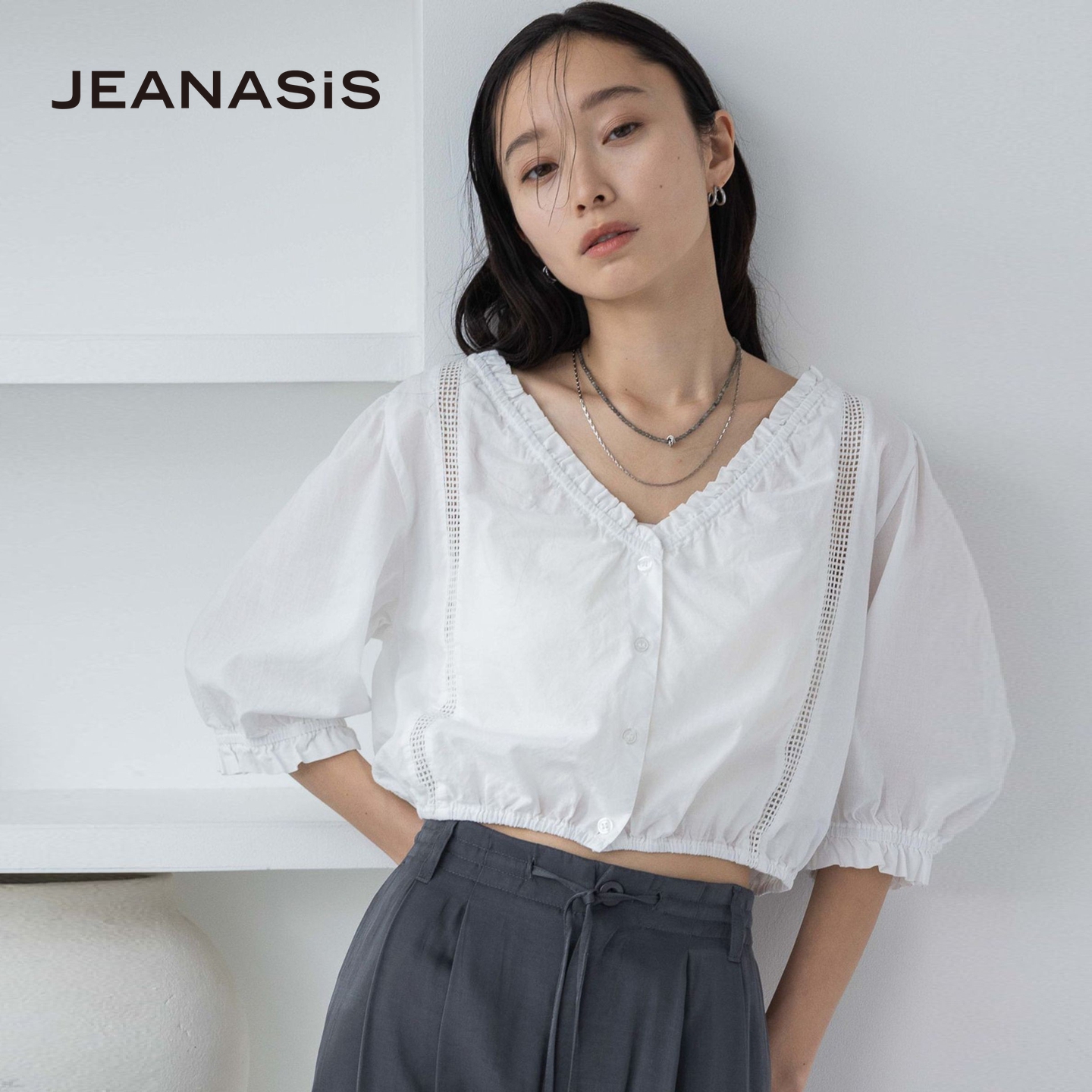 JEANASIS衬衫女2025夏季新款时尚休闲纯色V领短款上衣492476