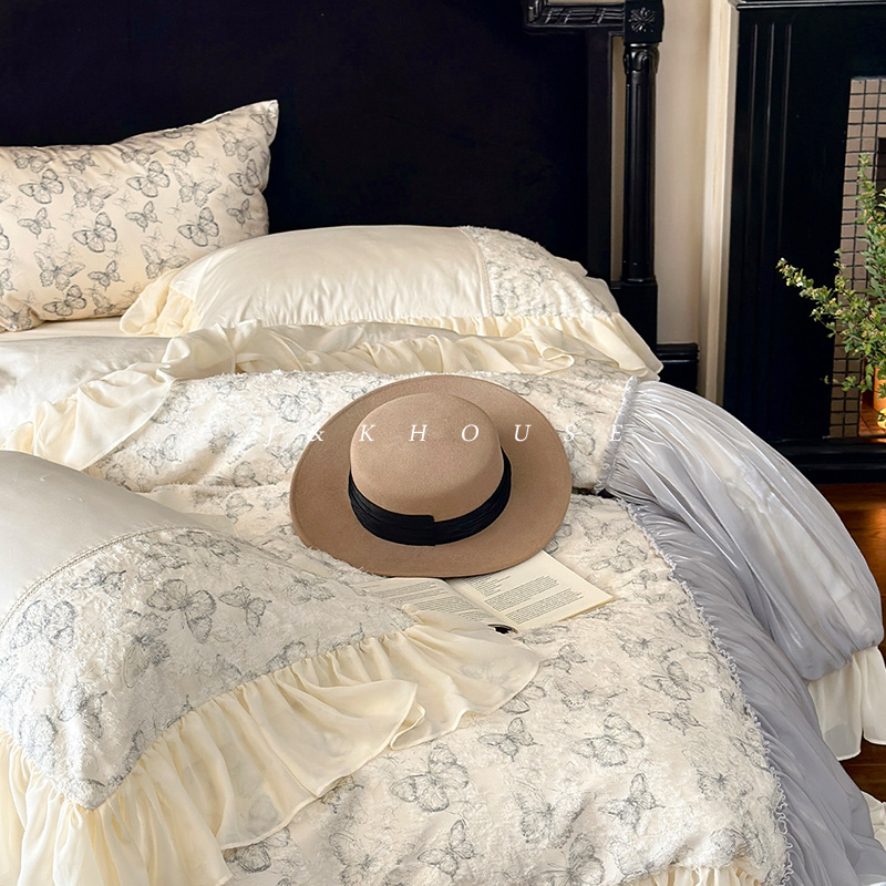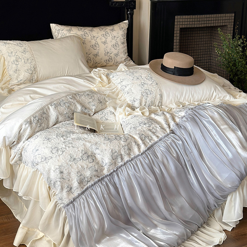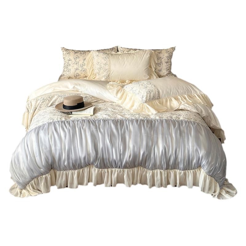 Retro | 复古公主风全棉贡缎四件套纯棉床单被套法式花边床上用品