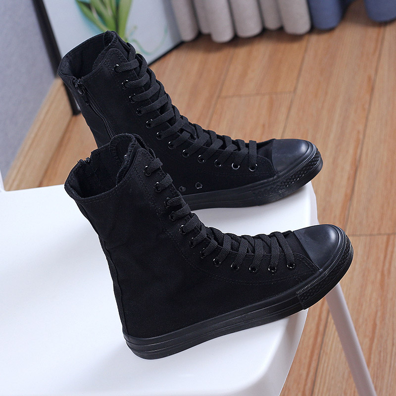高帮透气小白鞋女2025新款春夏透气侧拉链帆布鞋爆款百搭舞蹈鞋