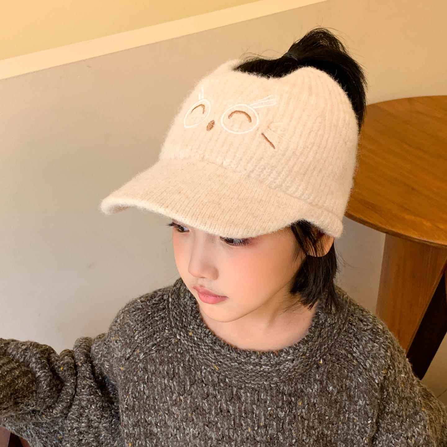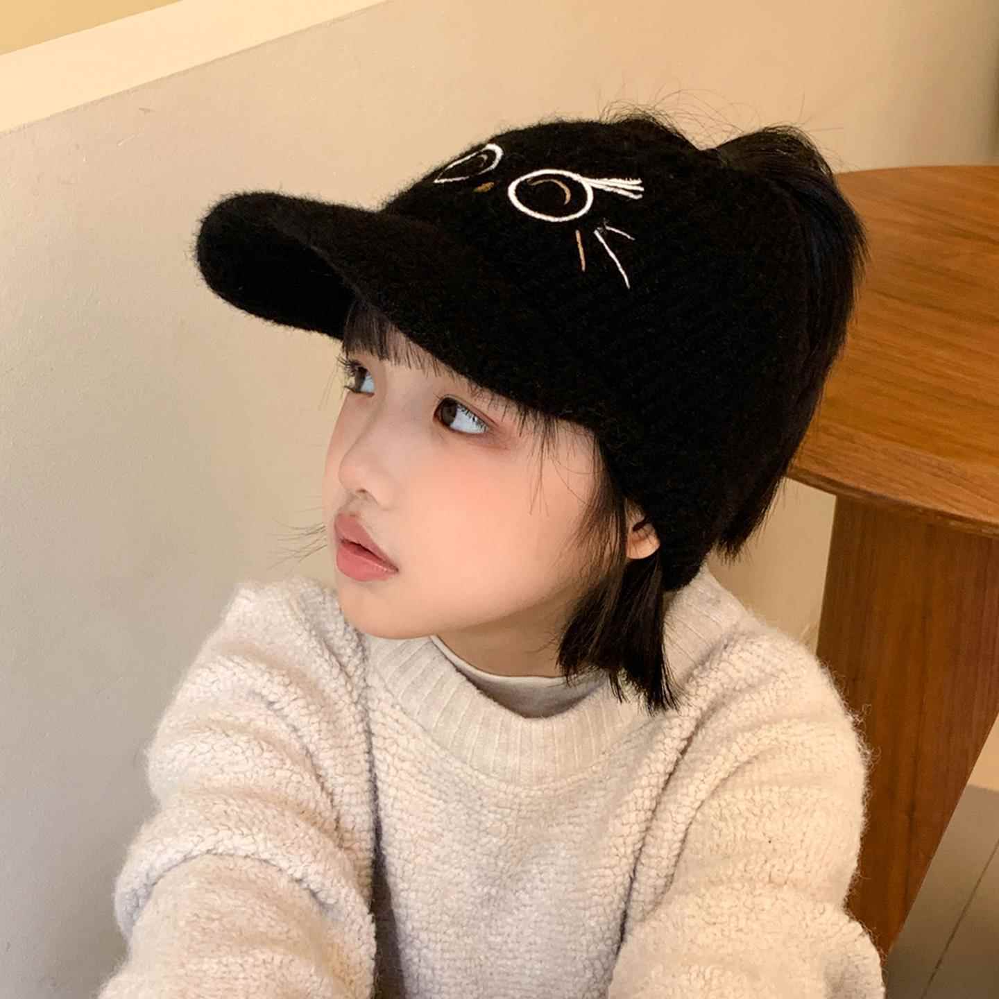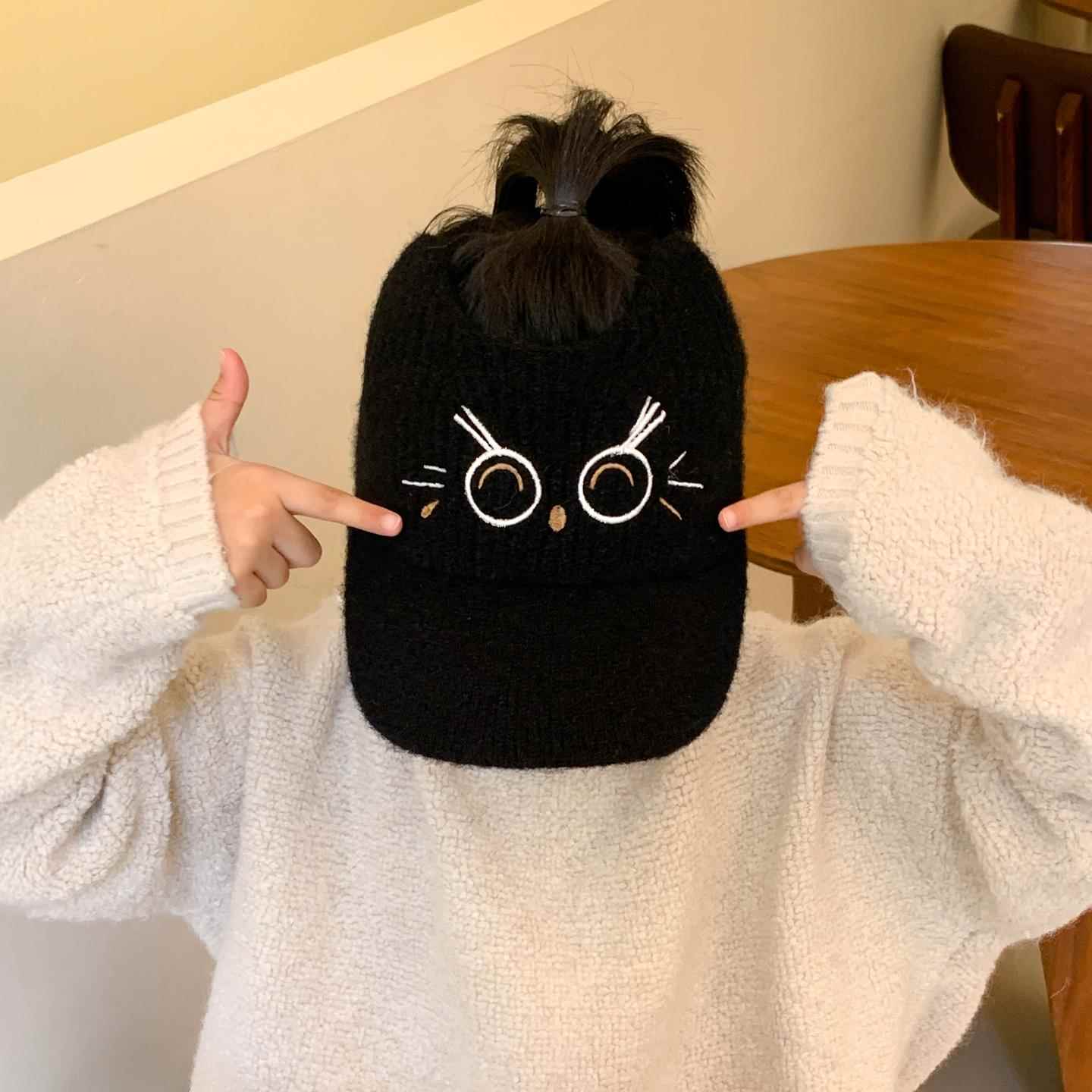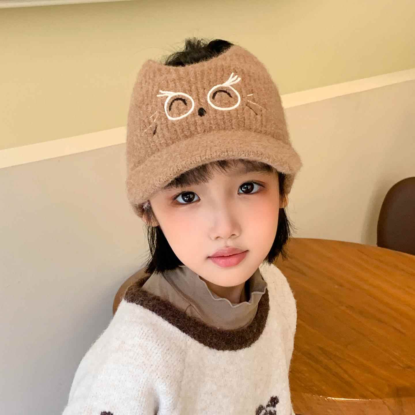 2025女童帽子秋冬季棒球针织保暖护耳宝宝加厚毛线男童空顶鸭舌帽