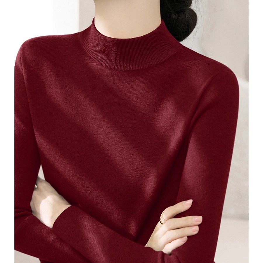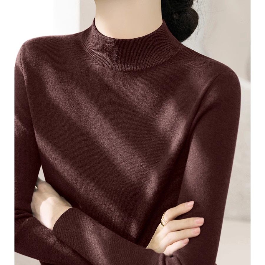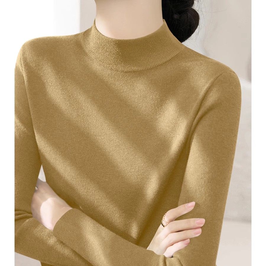 秋冬2025新款半高领修身内搭打底毛衣女装法式高级灰色长袖针织衫