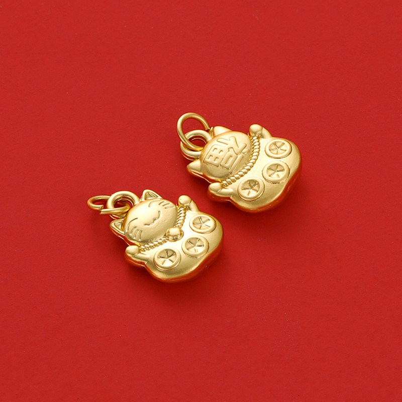 18k沙金保色真金哑金招财猫葫芦桃花招财吊坠diy礼物饰品手链项链