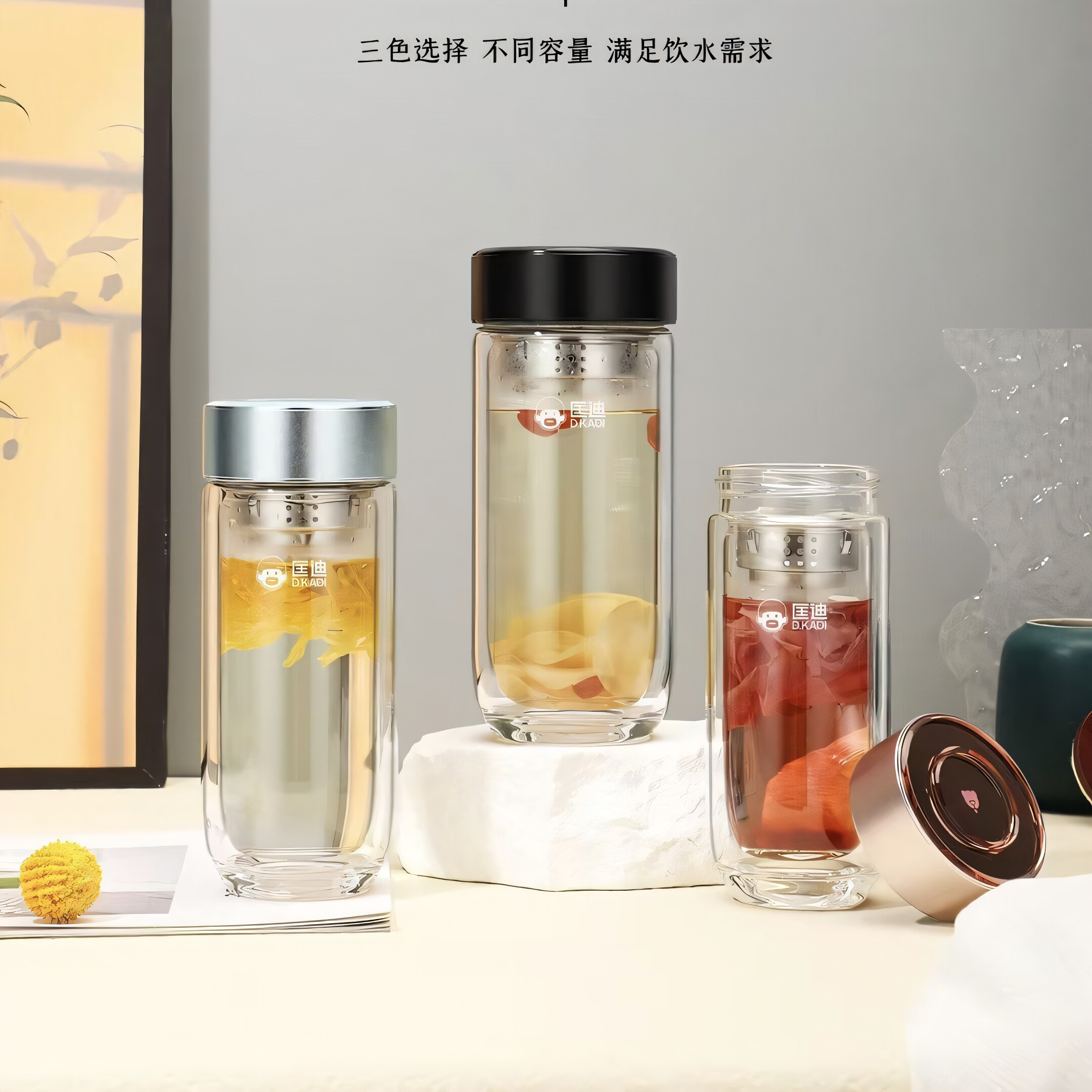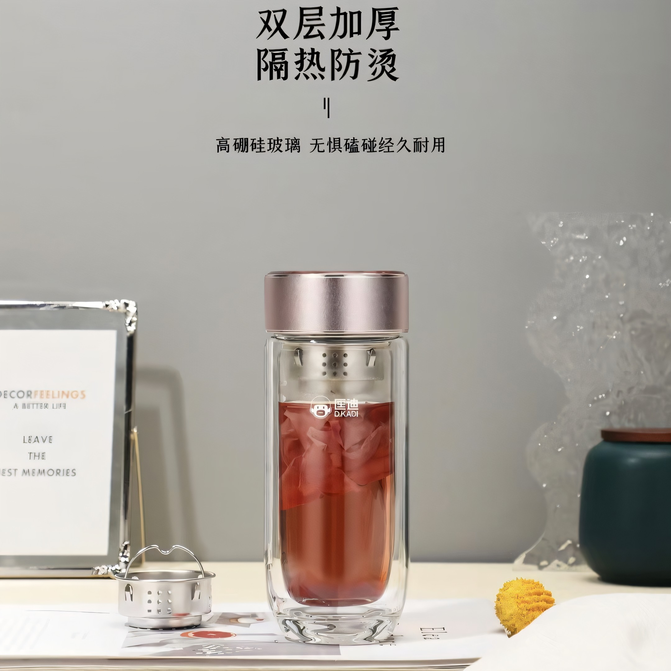 匡迪新款双层鹅蛋杯泡茶杯办公车载便携水杯子个性男女士玻璃杯