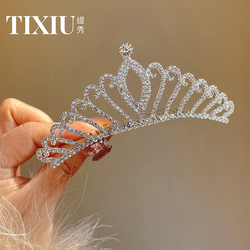 女童皇冠头饰儿童韩式王冠生日演出公主宝宝水钻插梳发夹发卡发饰