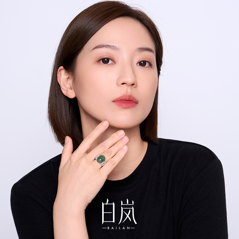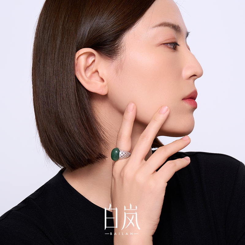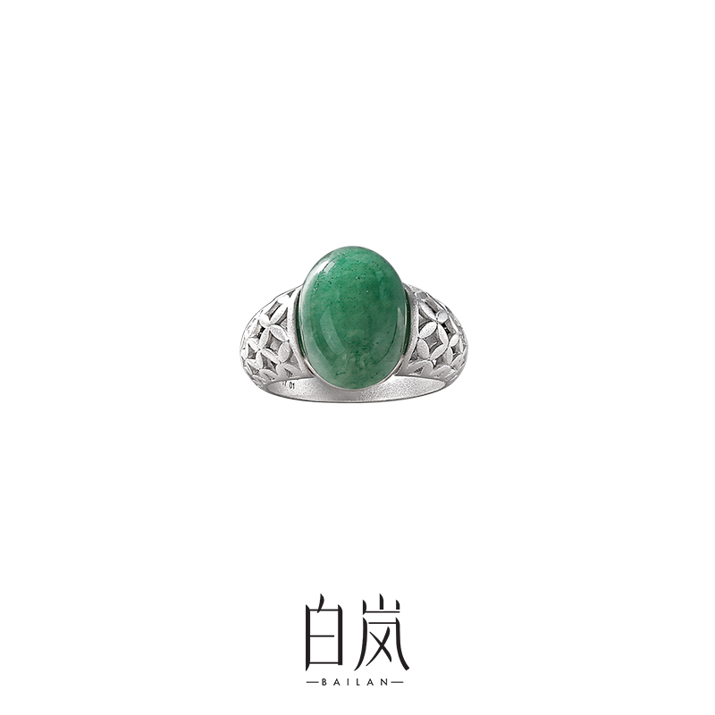 白岚花砖东陵玉戒指925银复古轻奢高级新款气质饰品首饰女QL4232