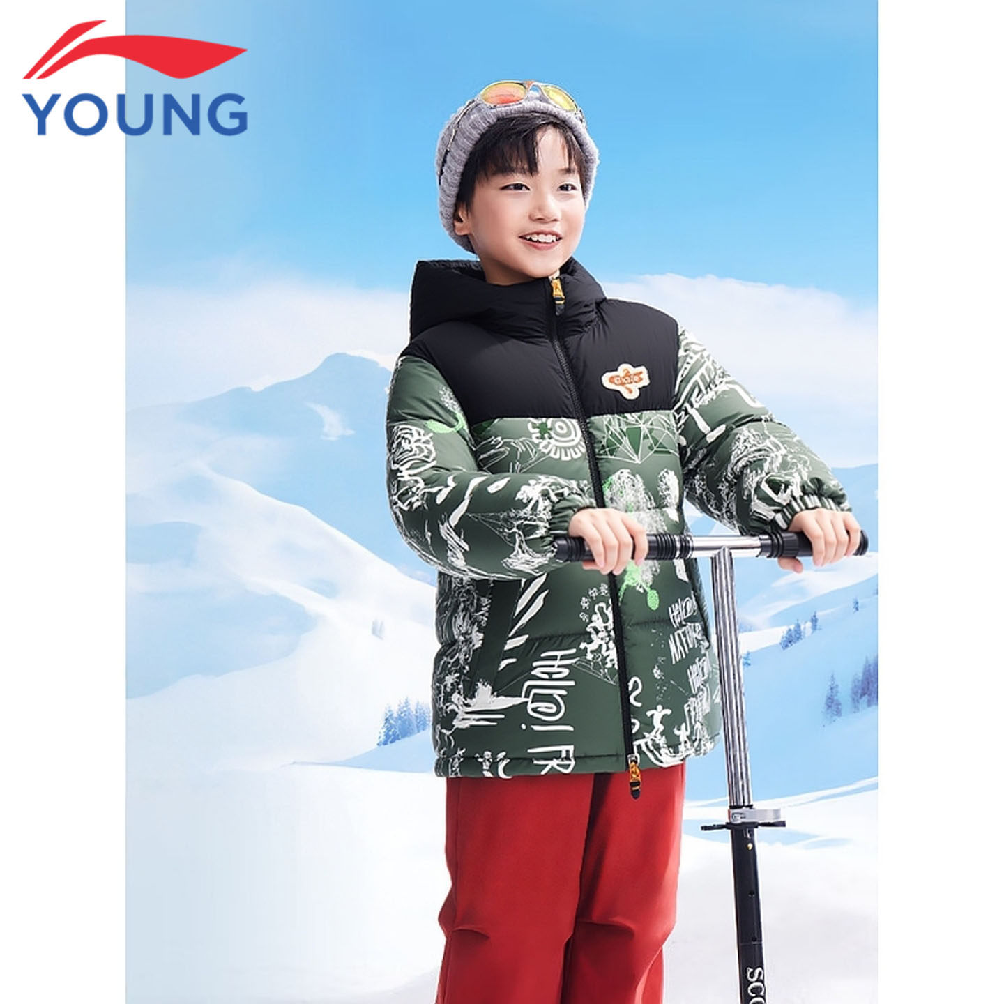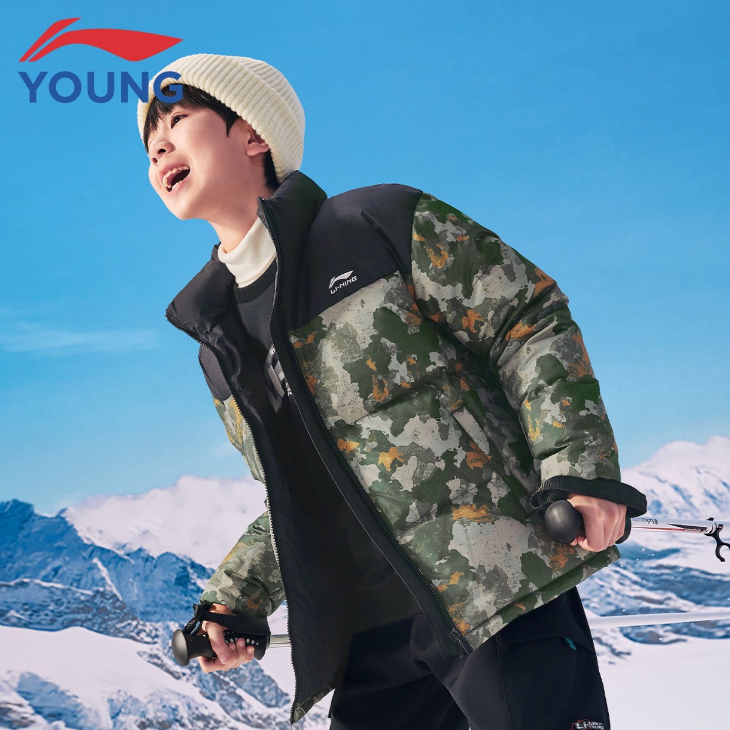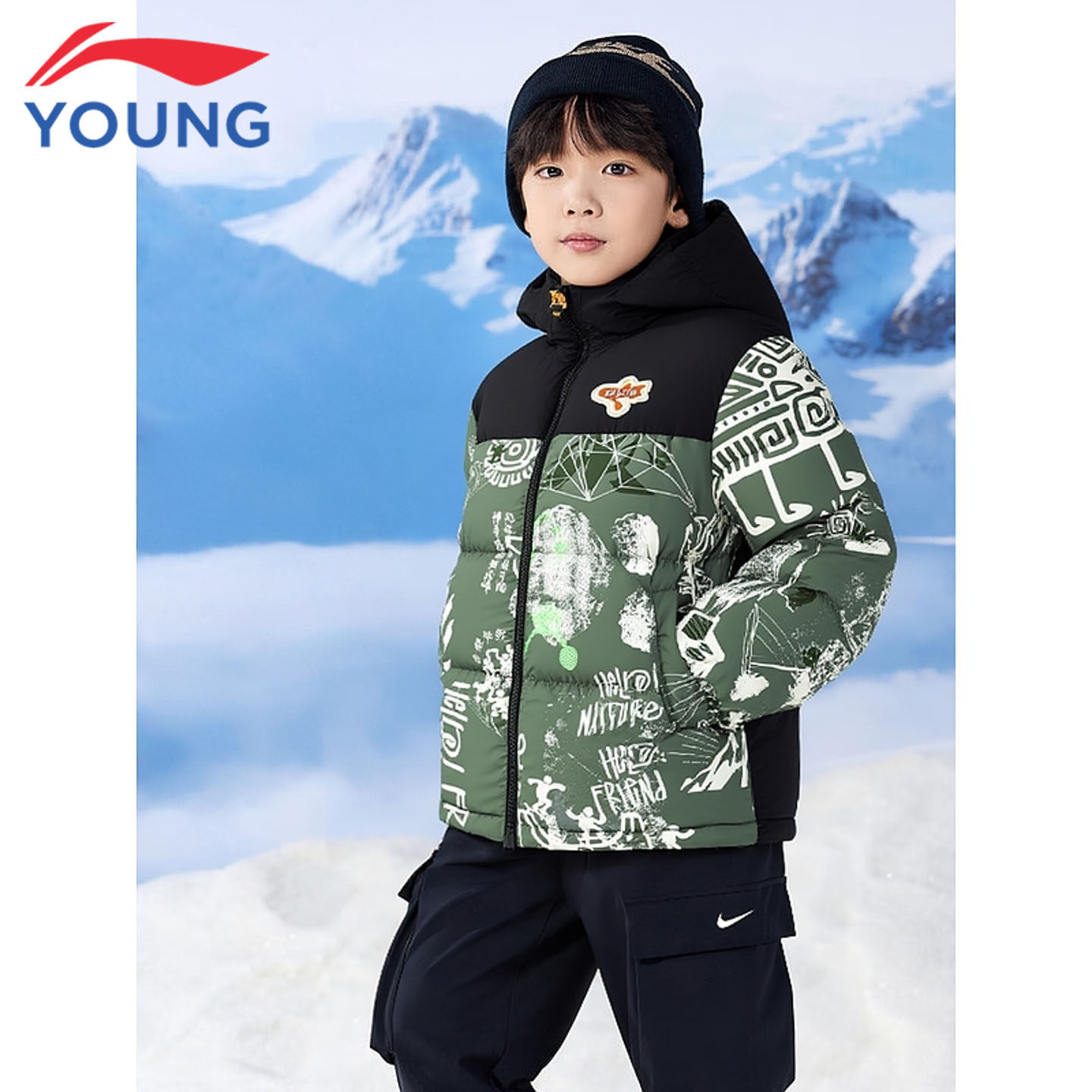 李宁儿童羽绒服男童大童25新款秋冬短款加厚保暖防风立领连帽外套