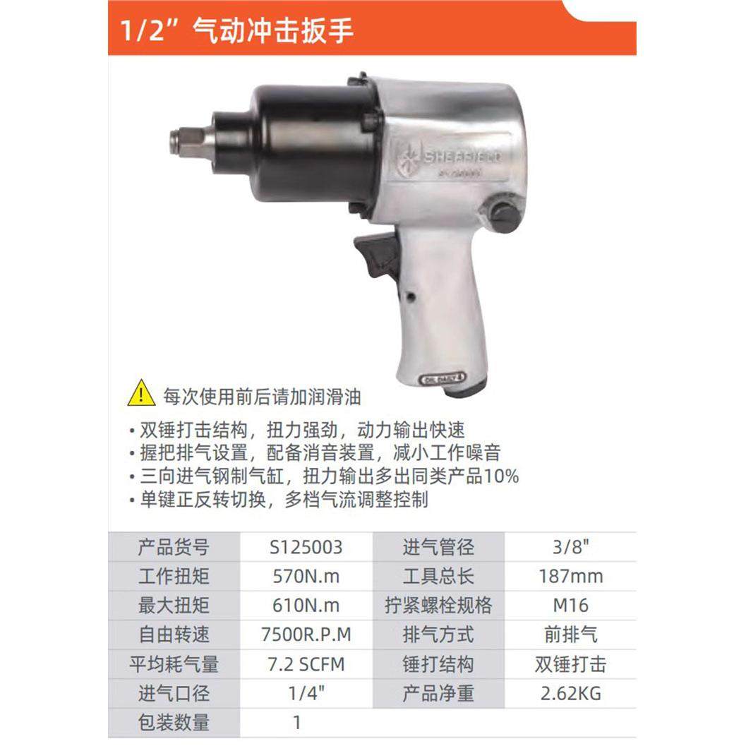 钢盾1/2寸维修级汽保专用扳手气动冲击扳手扳子扭矩610N.mS125003