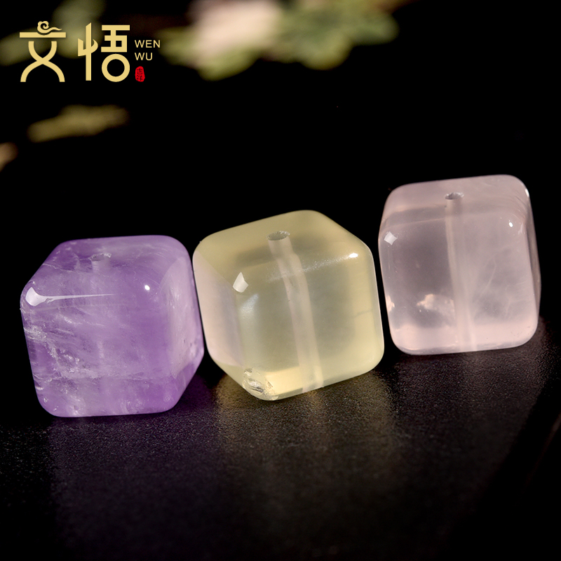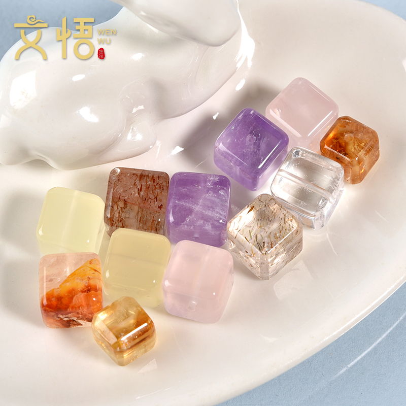 天然黑金超黄塔晶方糖散珠子白紫黄水晶粉晶异形手串配珠手链配件