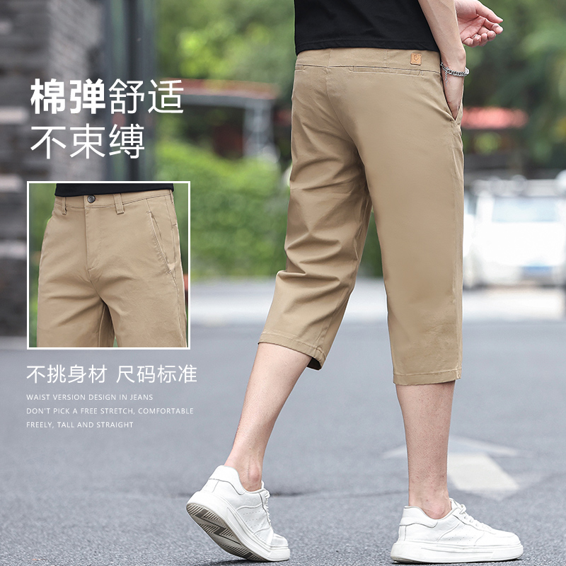 罗蒙夏季男装休闲裤宽松大码短裤男士七分裤纯棉直筒裤子薄款男裤