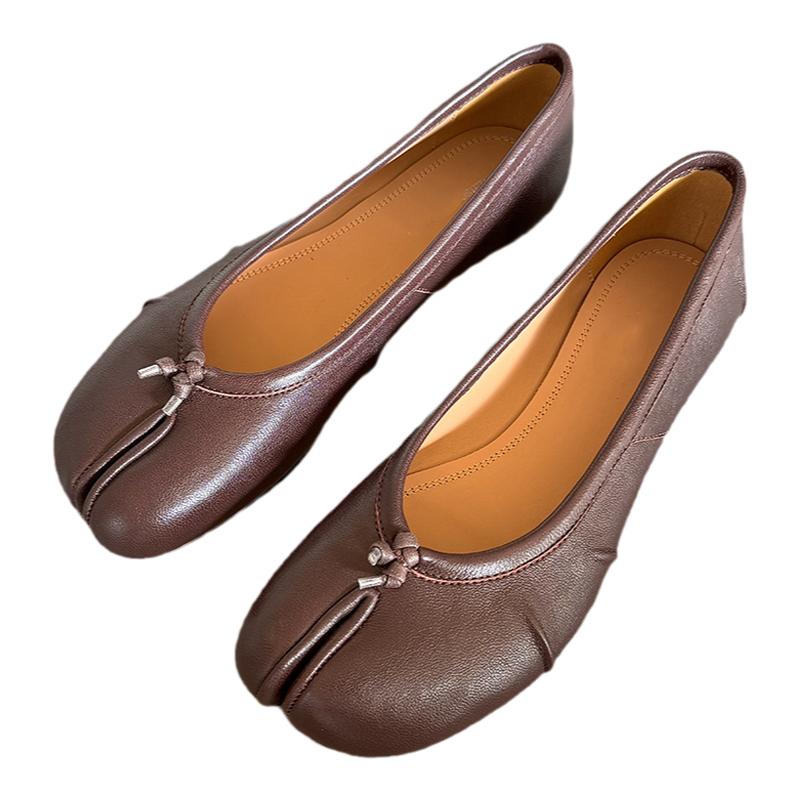 顶版褶皱分趾鞋女2025春新款猪蹄tabi芭蕾舞单鞋羊皮浅口平底鞋