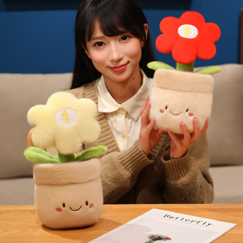趣味有钱花盆栽毛绒玩具公仔太阳花植物发财玩偶桌面摆件新年礼物