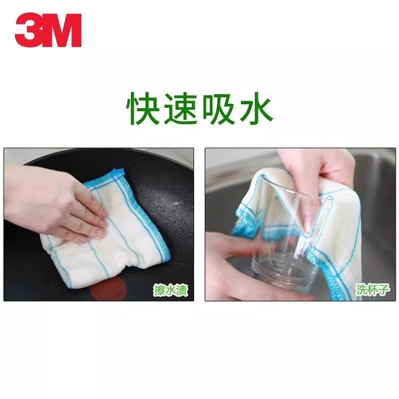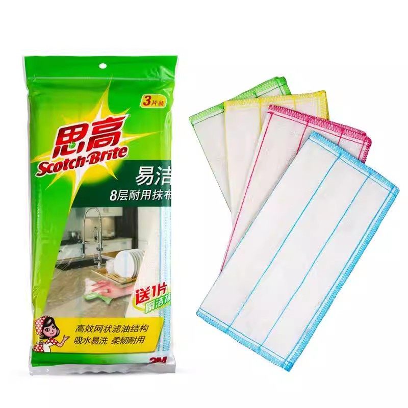 3M思高厨房抹布8层吸水加厚清洁布不易掉毛不易沾油洗碗布洗碗巾