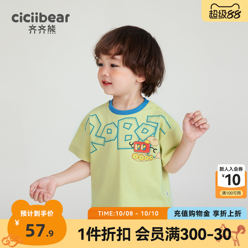 [凉感]齐齐熊男童短袖t恤薄款儿童休闲透气半袖小童上衣印花童装
