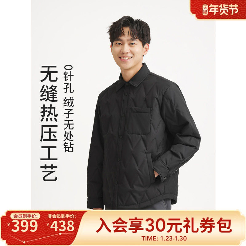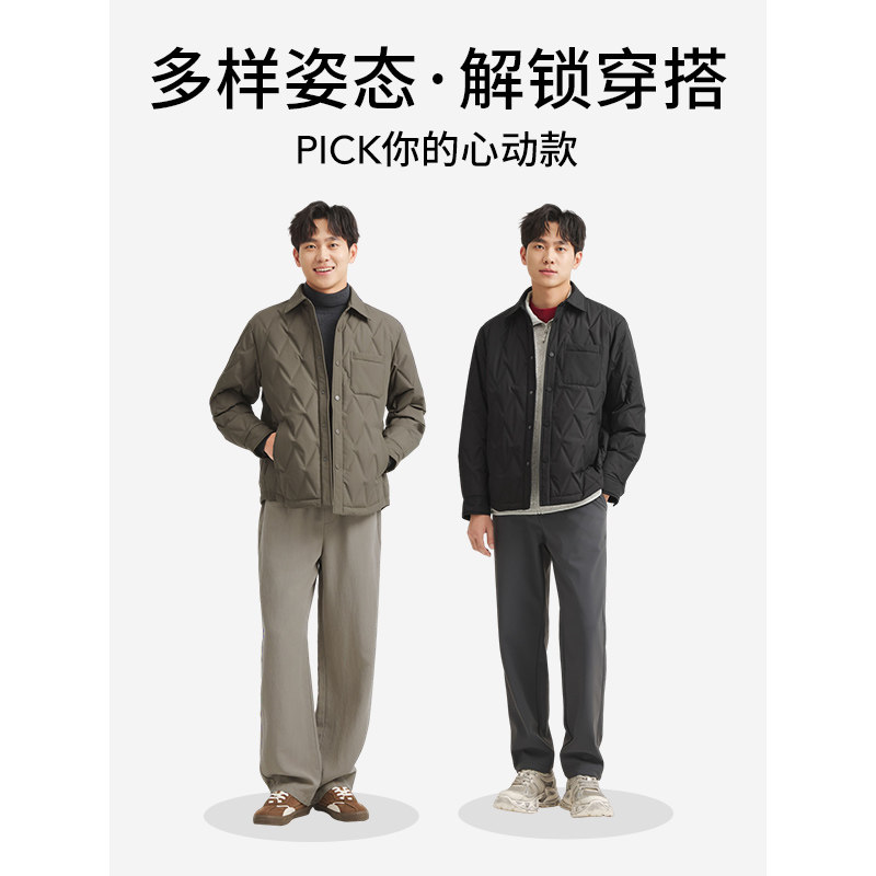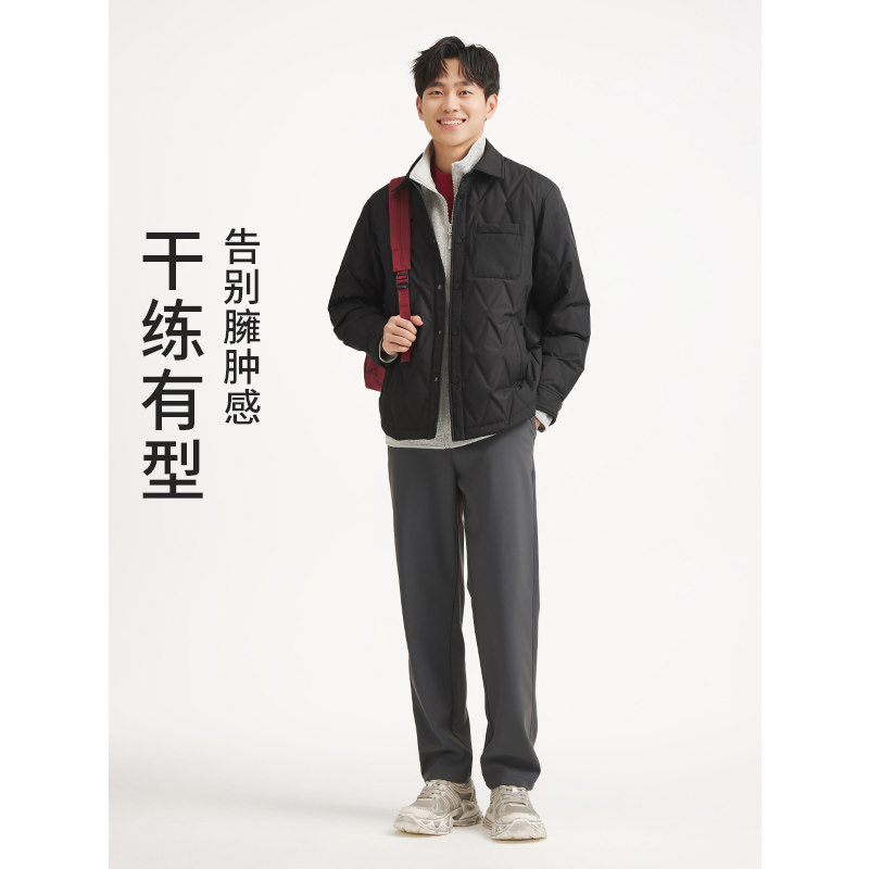 热风男士衬衫羽绒服2025年冬季新款菱形格轻薄款羽绒服轻盈温暖