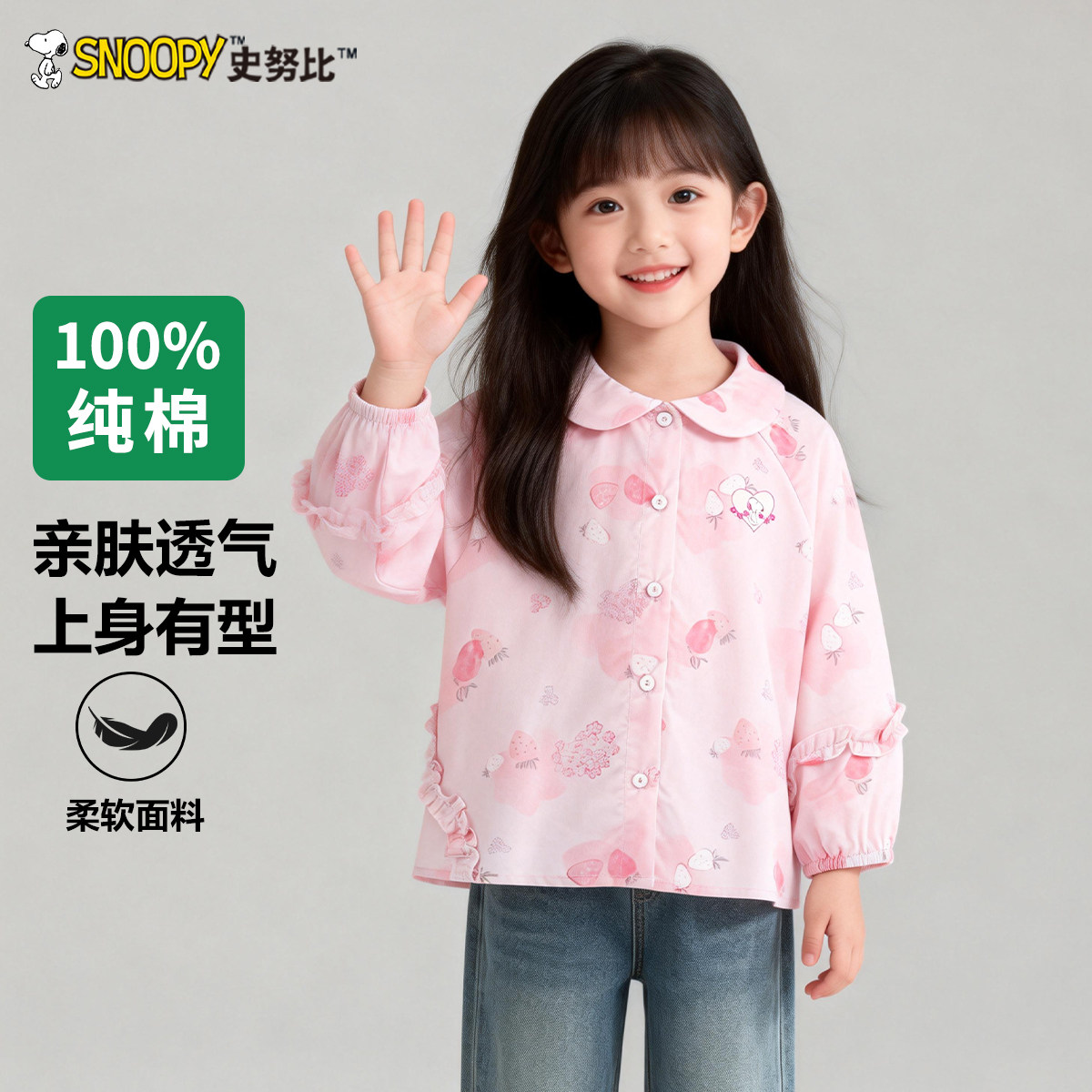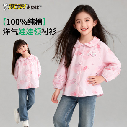 史努比女童纯棉衬衫儿童印花衬衣2026春装新款女宝宝春秋时髦上衣