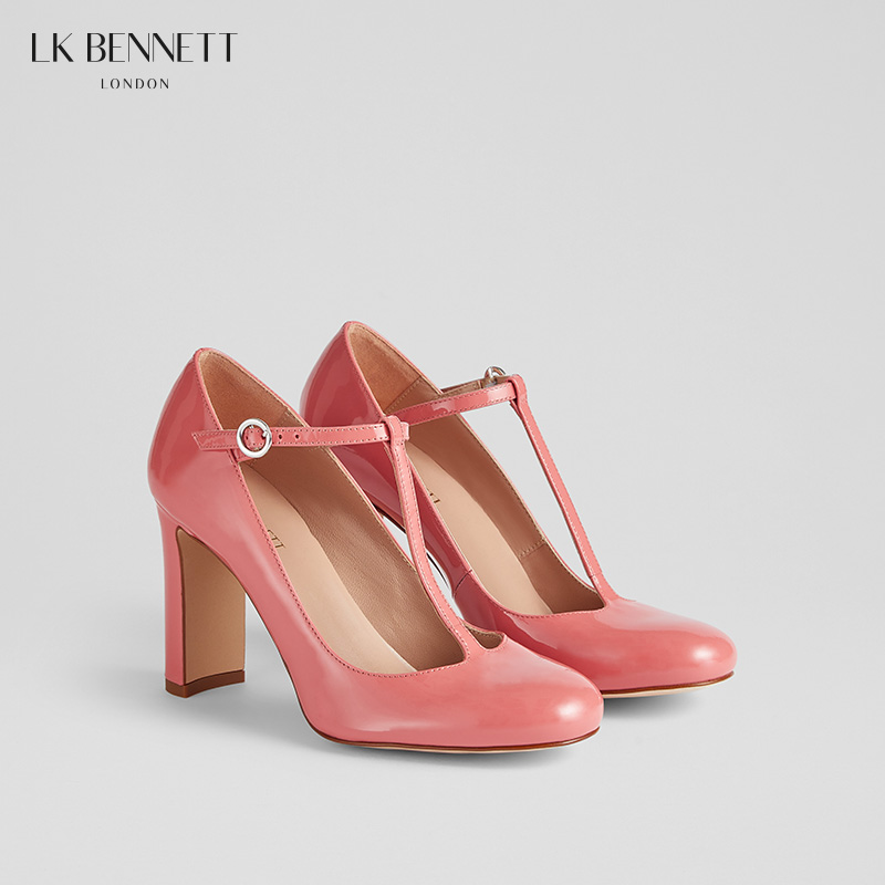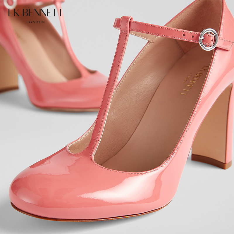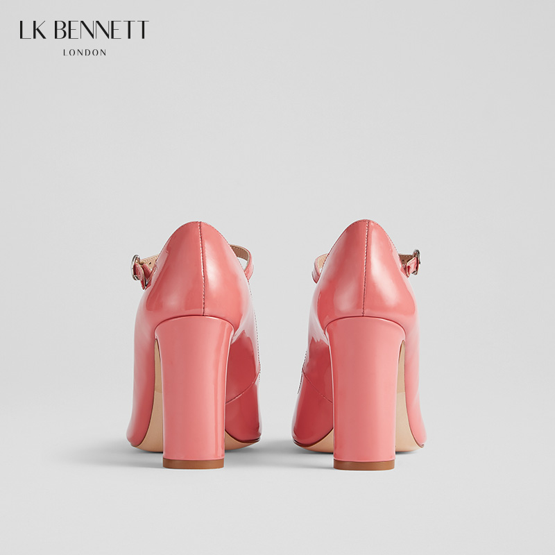 lkbennett粉色粗跟玛丽珍单鞋女2024新款真皮漆皮复古圆头高跟鞋