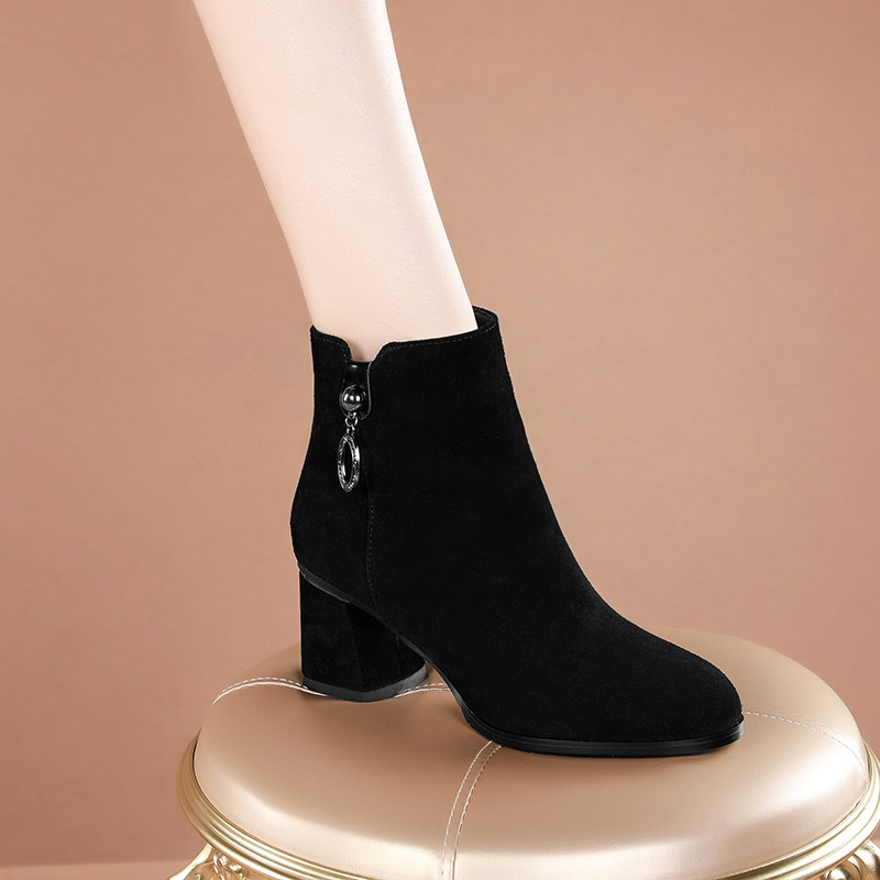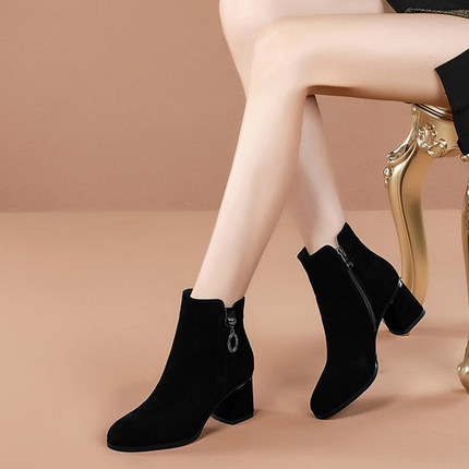 短靴春秋季磨砂黑色中跟粗跟马丁
