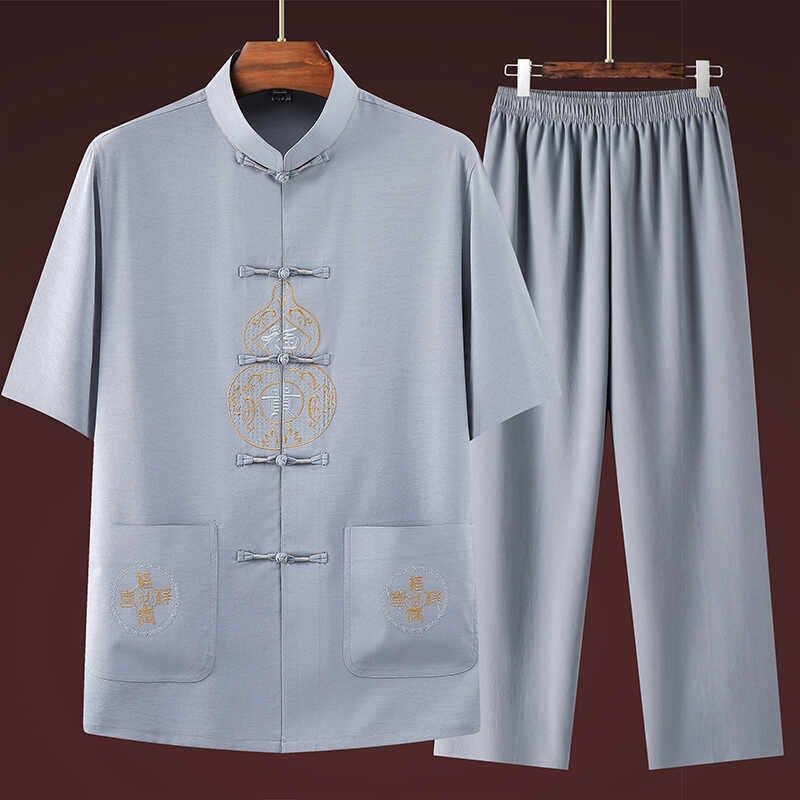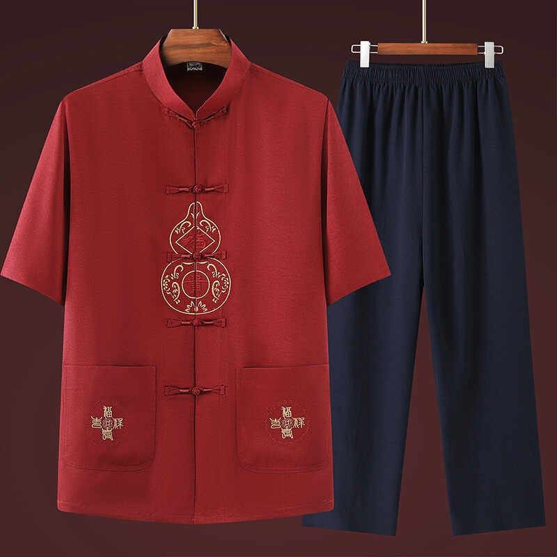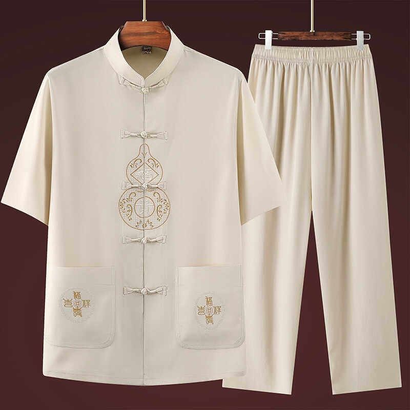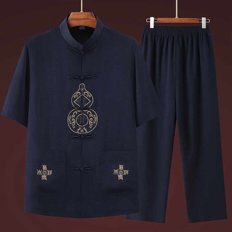 夏天中国风唐装男两件套中老年人爸爸装夏季新款短袖休闲套装透气