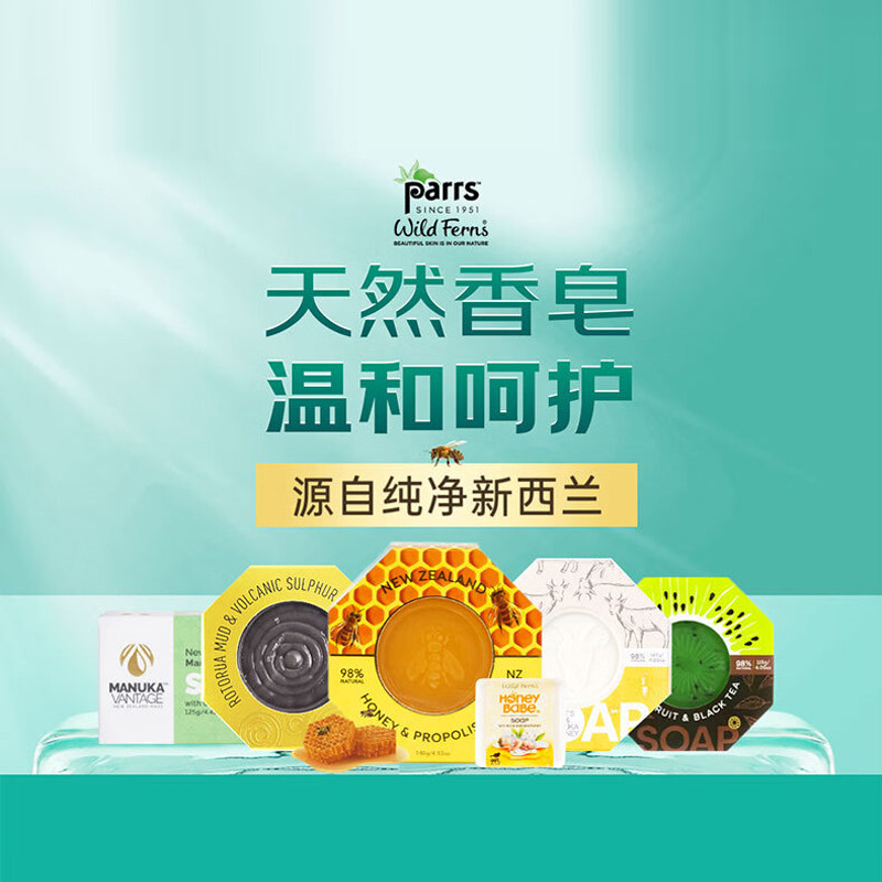 【套装】新西兰parrs帕氏天然香皂蜂胶皂羊奶皂奇异果火山泥香皂