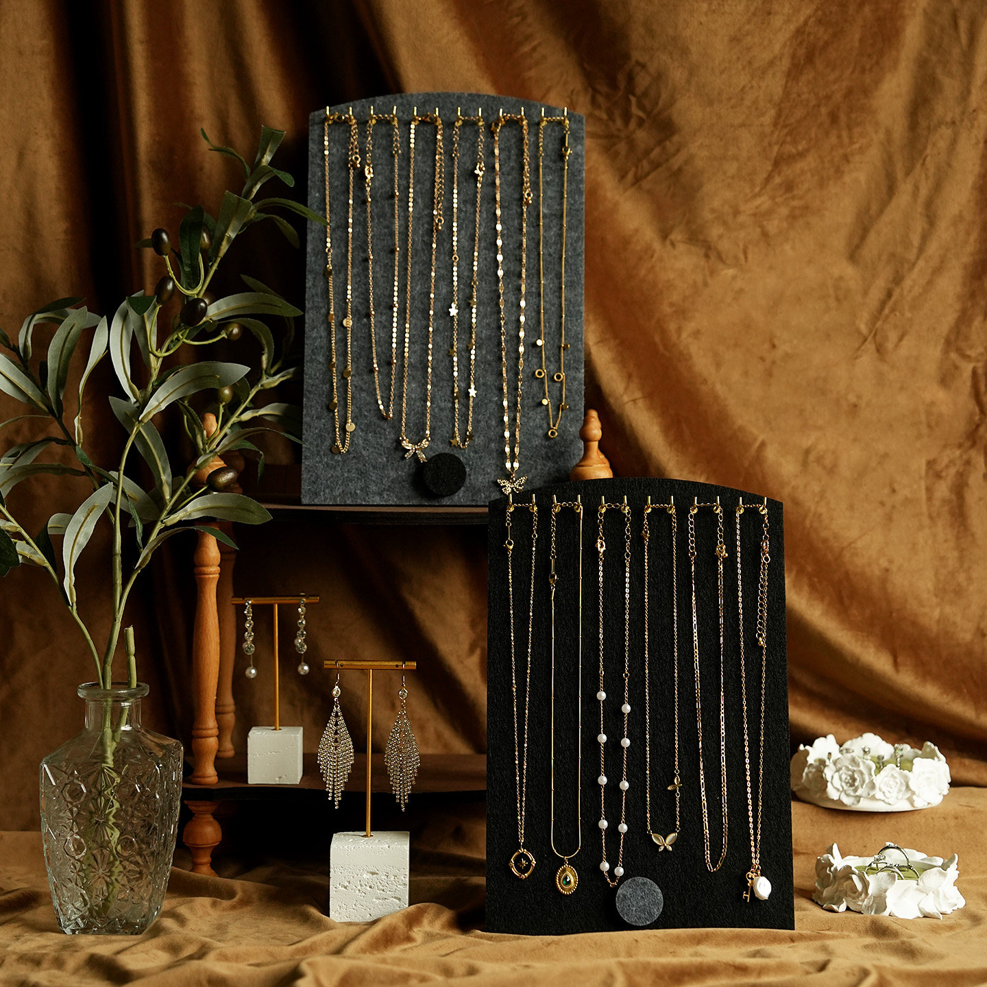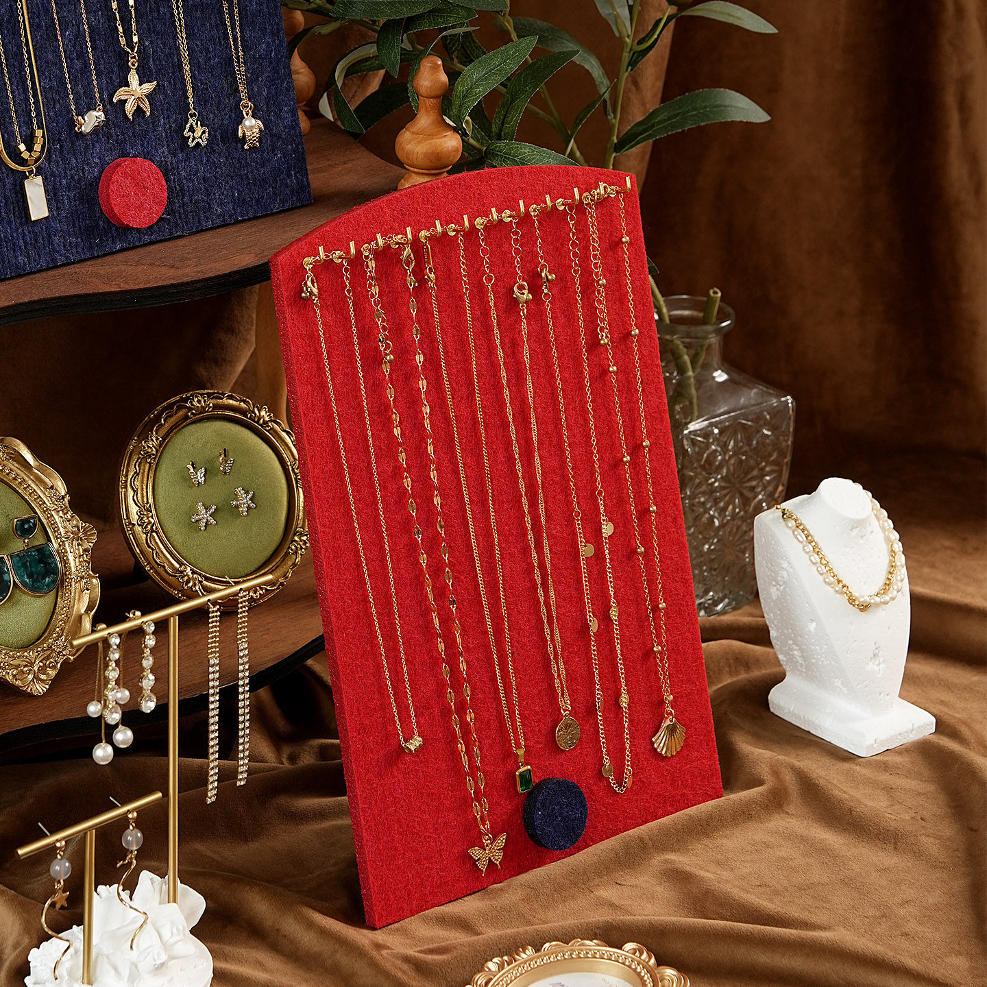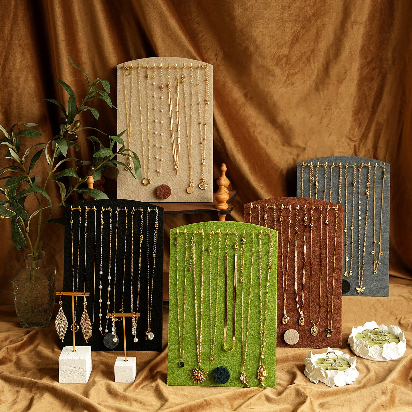首饰展示架多色毛毡复古手链牌耳环架戒指盘饰品店铺陈列拍摄道具