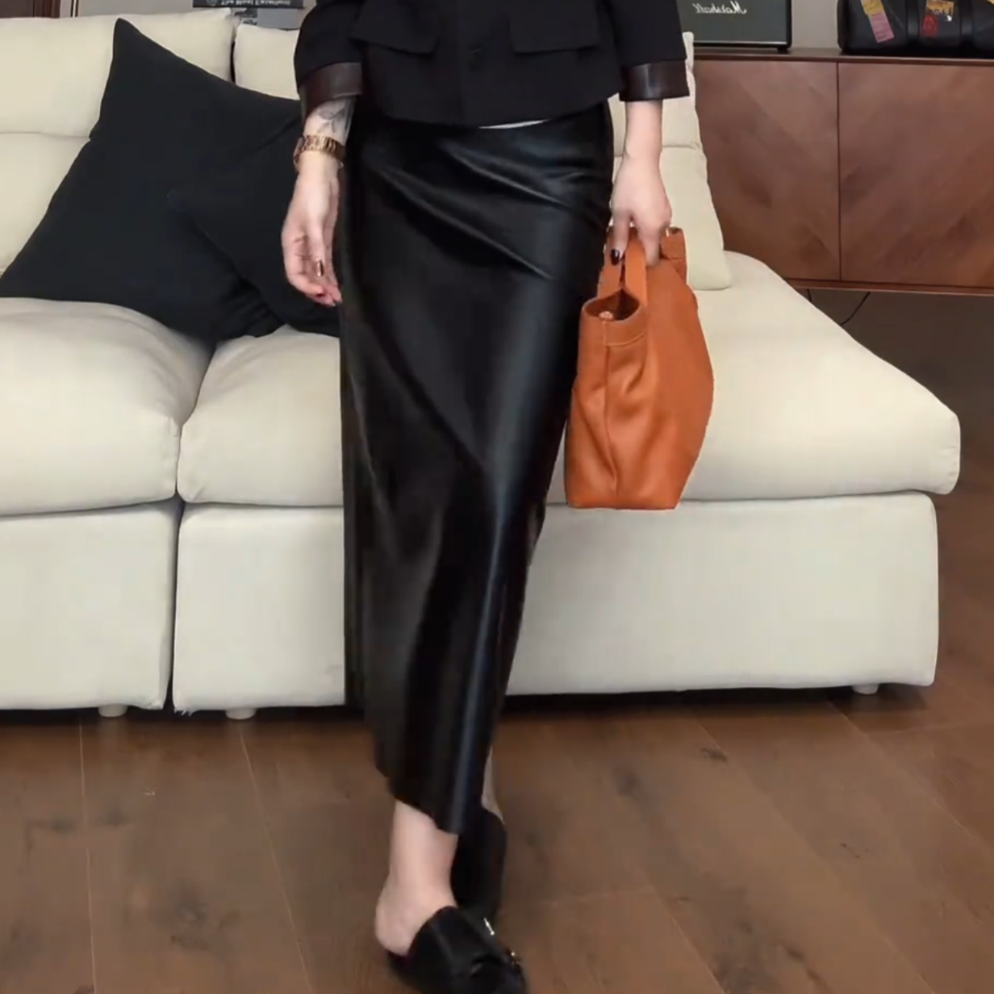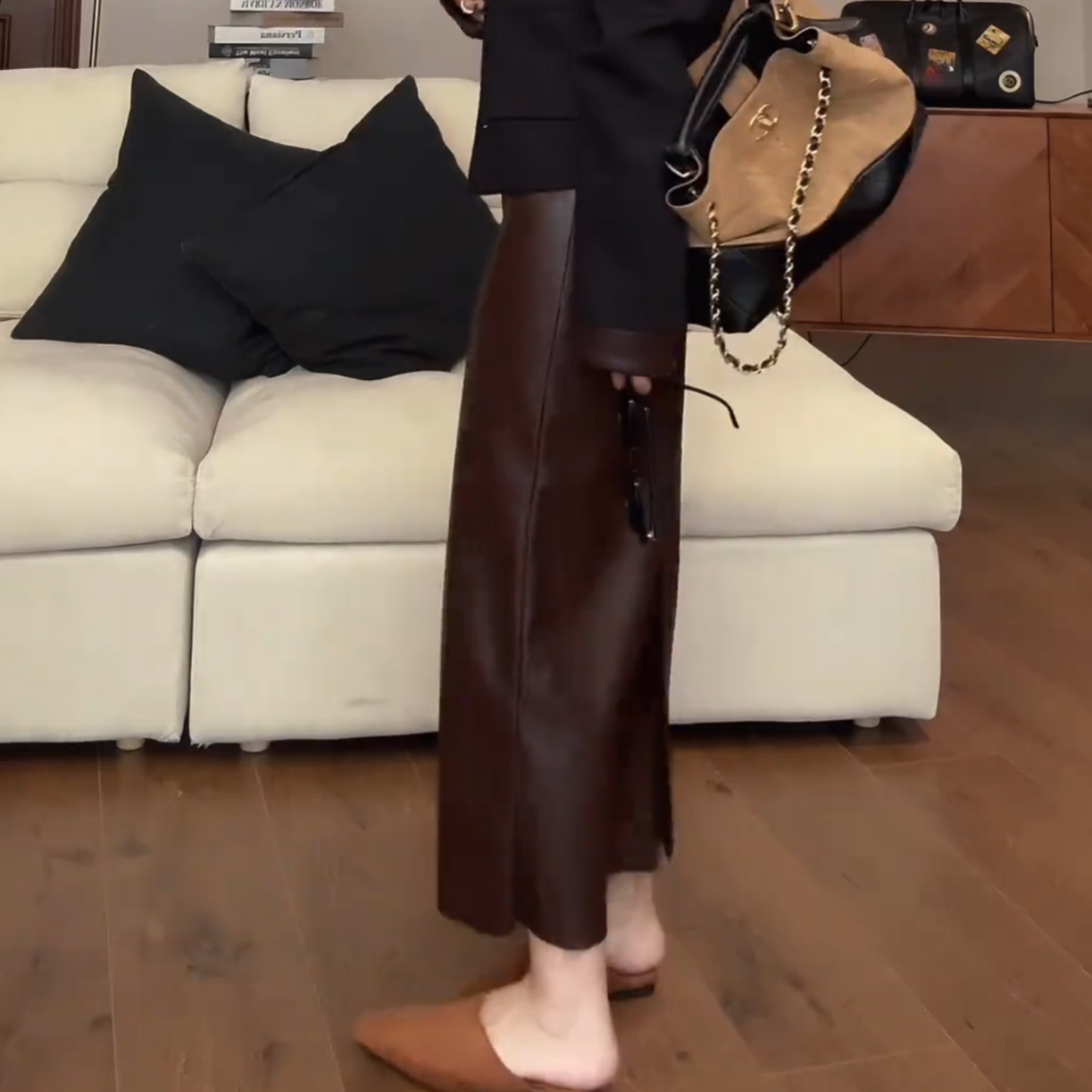 高级感简约通勤百搭皮质半身裙女秋冬时尚显瘦舒适宽松垂坠感长裙