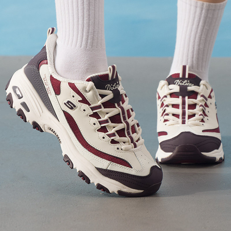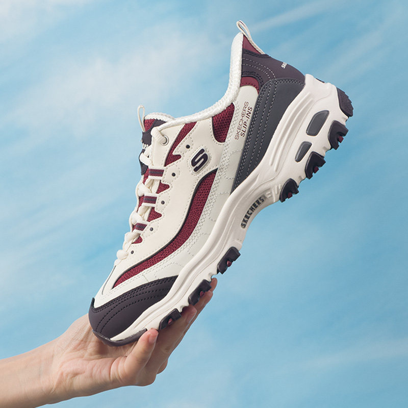 斯凯奇官方正品女鞋闪穿熊猫鞋秋冬新款减震厚底运动休闲鞋