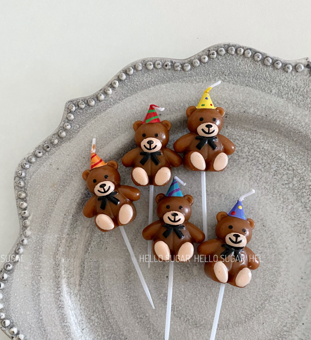 卡通生日蜡烛ins流行花朵韩国复古派对帽小熊蜡烛甜甜圈蛋糕装饰