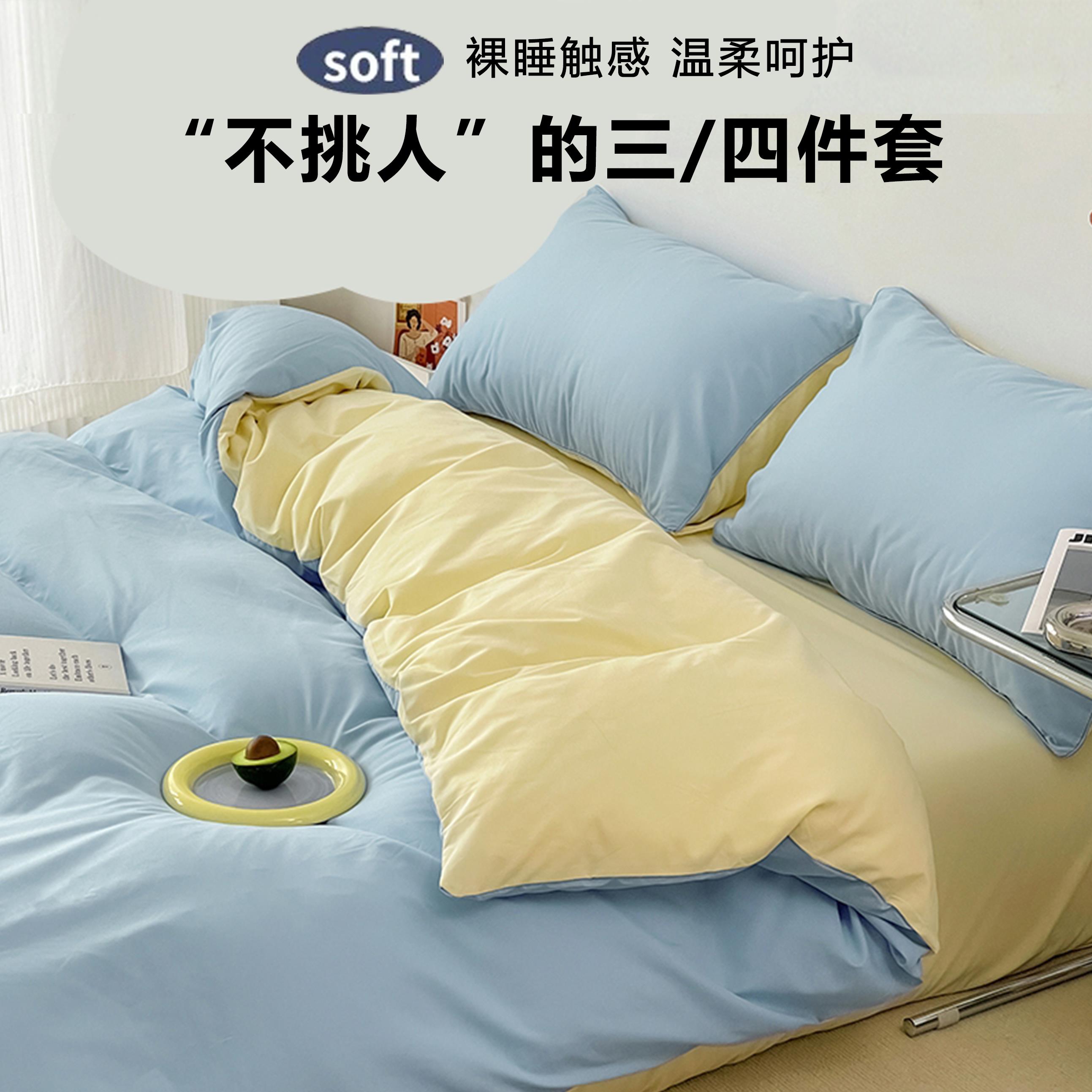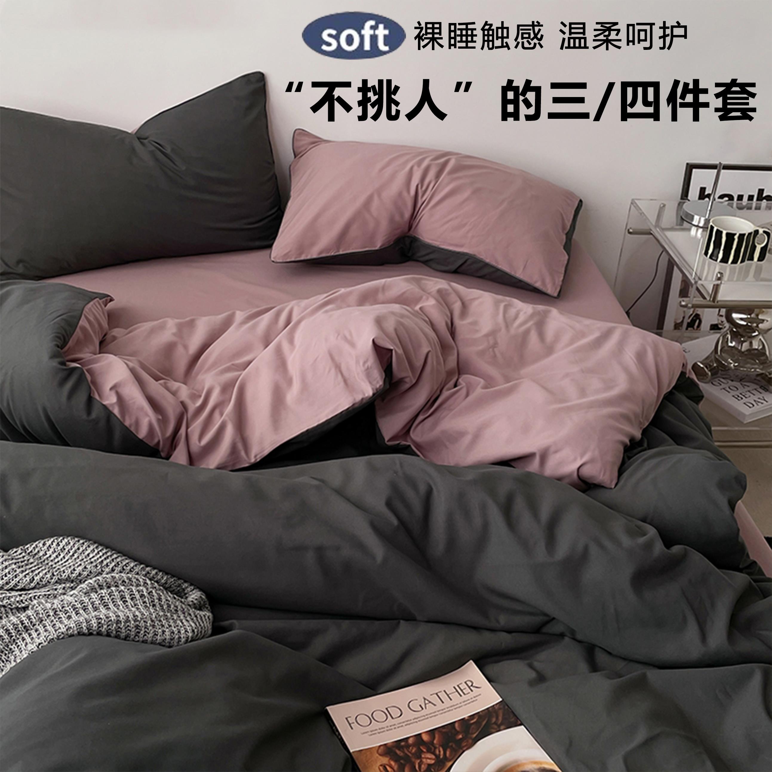 北欧简约床上用品四件套纯棉全棉被罩被套学生宿舍床单人三件套4
