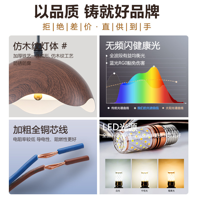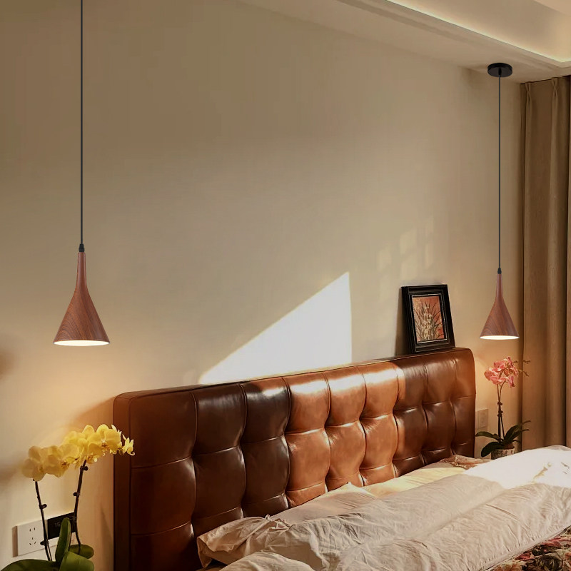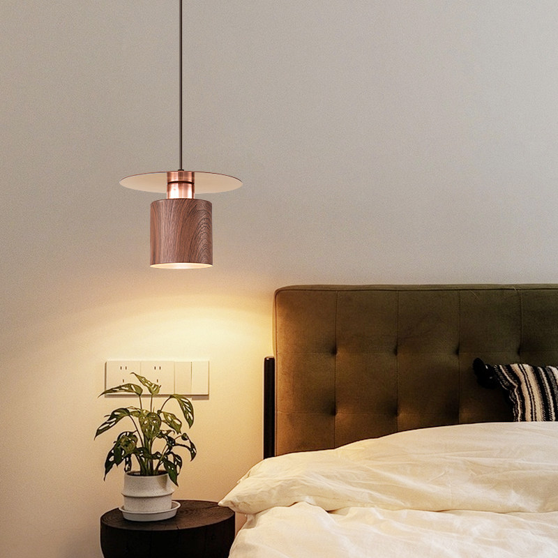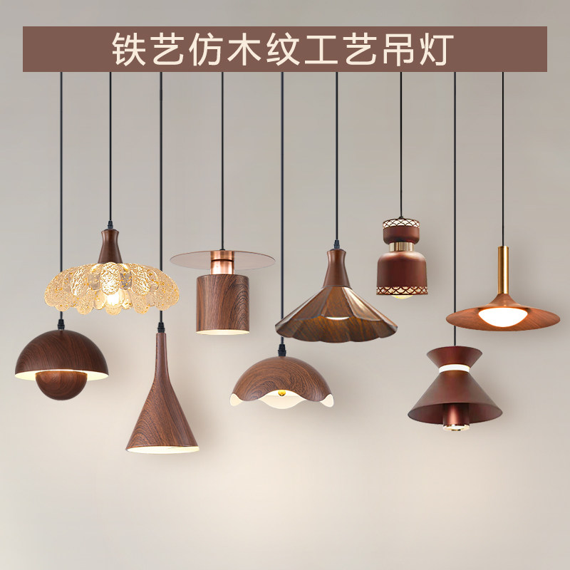 卧室床头小吊灯极简创意个性客厅餐厅走廊玄关中古风木纹长线吊灯